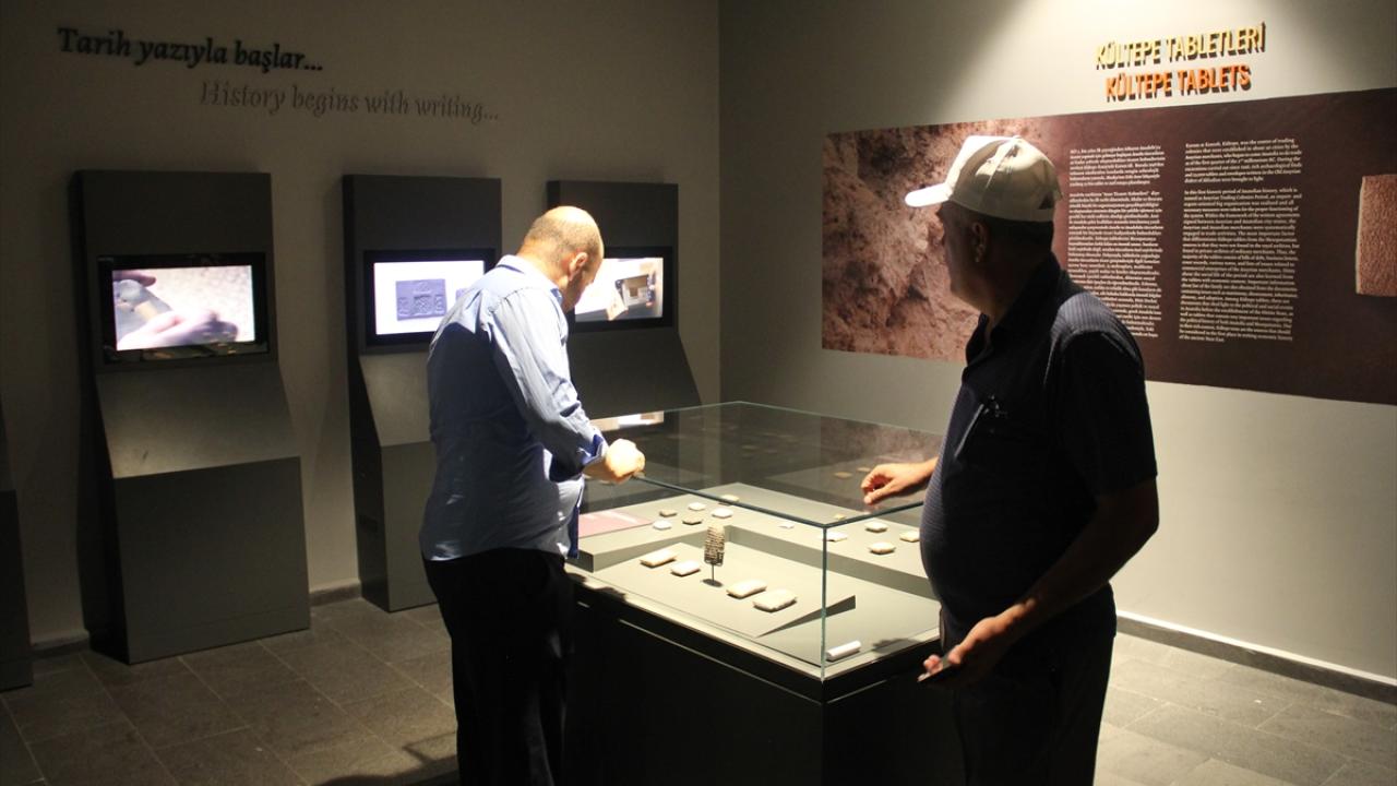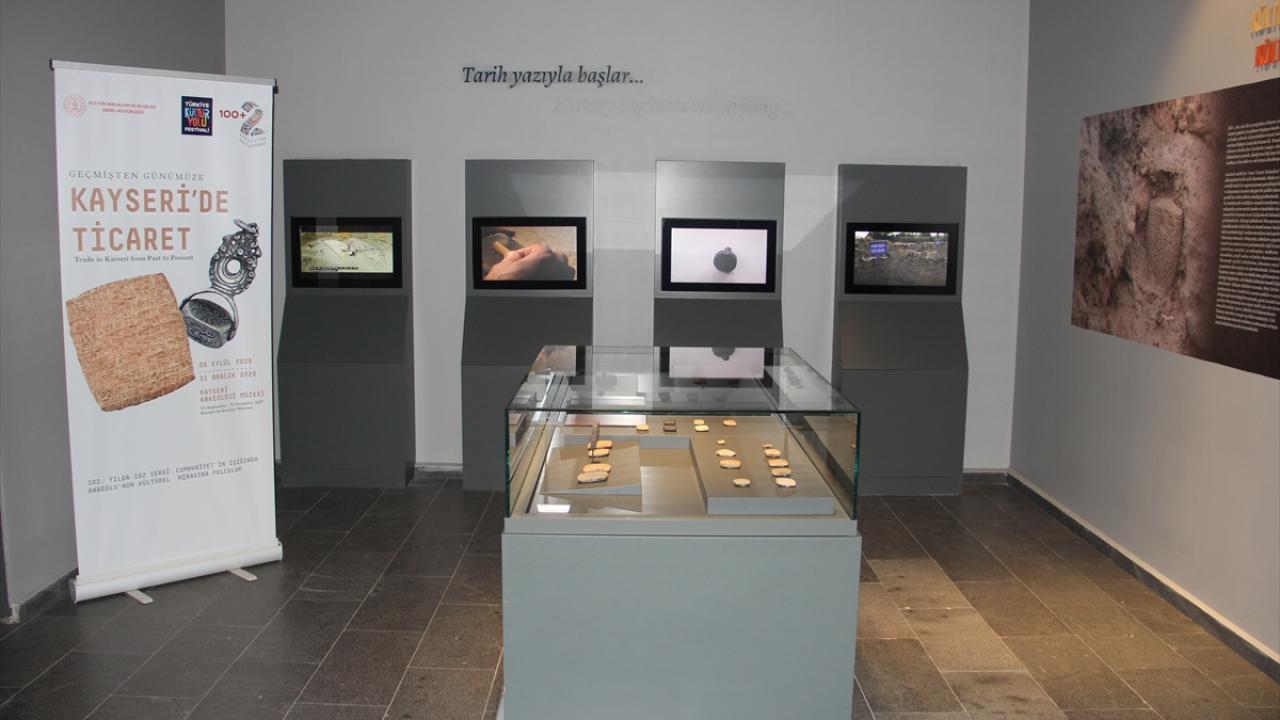 Kayseri Arkeoloji Müzesi Asur Ticaret Kolonileri Devri Salonu`nda açılan sergide, Asur Ticaret Kolonileri Çağı ile Geç Osmanlı Dönemi`nden Erken Cumhuriyet Dönemi`ne uzanan, kentin 6 bin yıllık ticaret birikimini yansıtan çivi yazılı kil tabletler, takılar, yüzükler, zanaatkar işçiliği ile küçük akik taşlara yapılmış portreler ve ticari objelere dair mühürler gibi 102 eser yer alıyor.