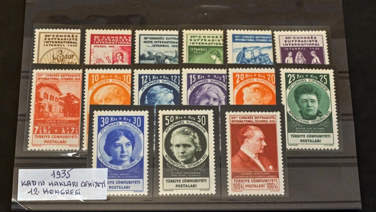 "Birincisi mat kağıt üzerine, ikincisi parlak kağıt üzerine aynı şekilde basımı yapıldı. Cumhuriyet döneminin son pullarından, Yıldız Sarayı`nda Kadın Hakları Cemiyeti`nin 12. Kongresi dolayısıyla `kadın hakları`na ilişkin basılan puldur. Biz, seriyi `Kadınlar Kongresi` diye anıyoruz. 15 seriden oluşan bu serinin son değerinin üzerinde Atatürk resmi vardır. 1930`da Ankara-Sivas Demir Yolu Hattı`nın açılışı dolayısıyla basılan pullar üzerine `Sivas Demir Yolları 1930` diye siyah sürşarj yapıldı."