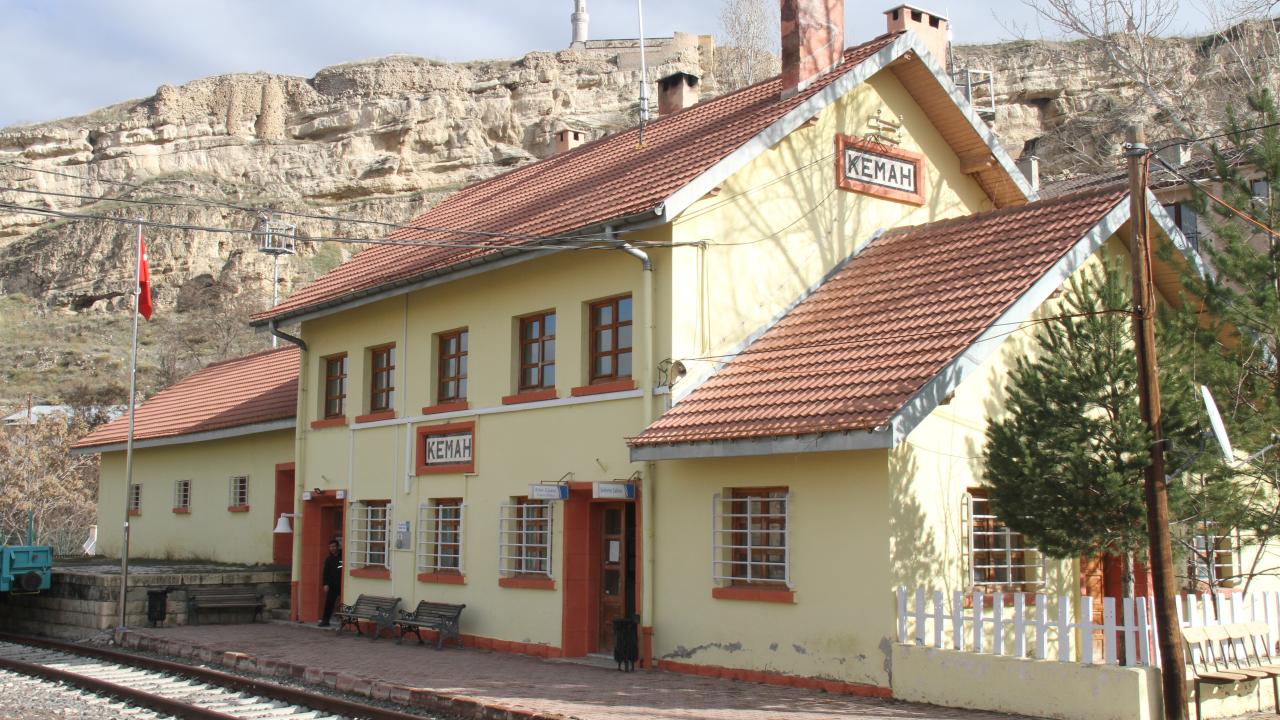 Erzincan Kemah`ta 1938`de inşa edilen, Kültür ve Tabiat Varlıkları Koruma Kurulunca korunan tren istasyonu, ilçenin sembol binaları arasında yer alıyor.