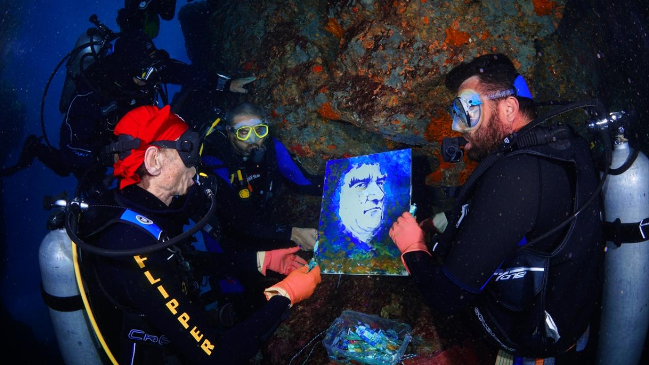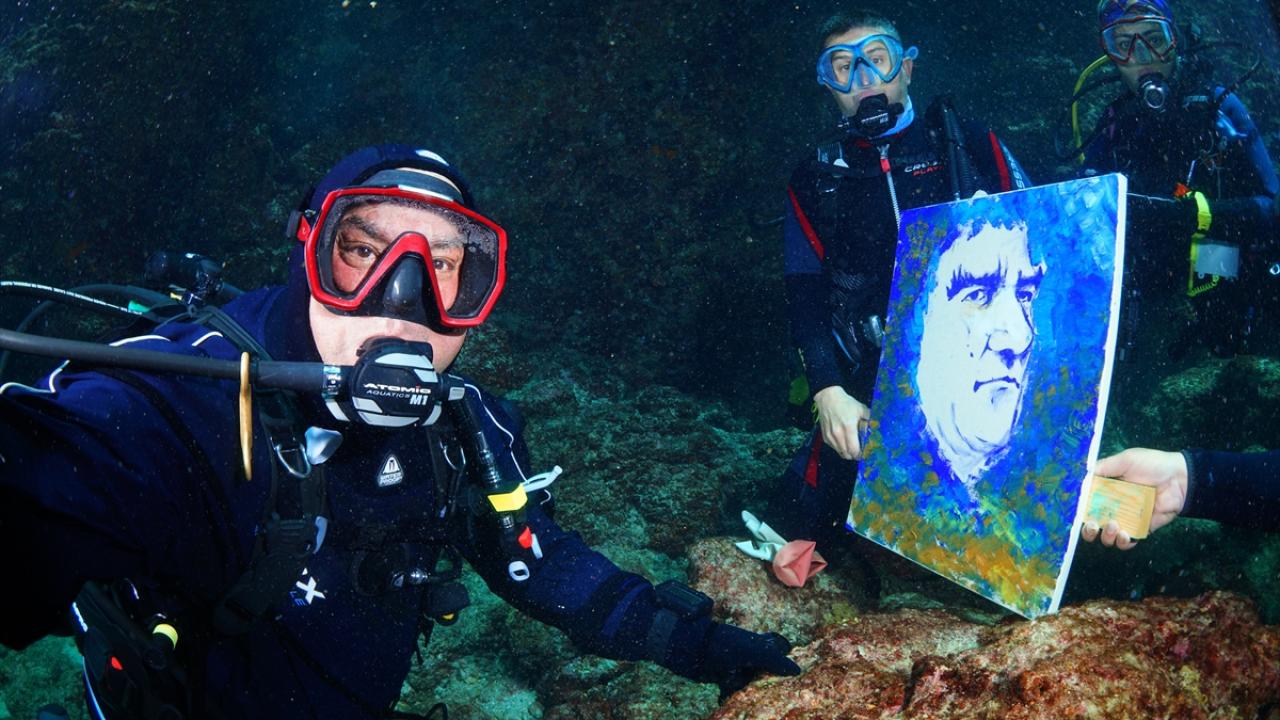 Su altındaki çalışmayı görüntüleyen Tahsin Ceylan ise su altında resim yapmanın çok iyi bir dalgıç olmanın yanı sıra çok iyi meziyetler gerektirdiğini söyledi.