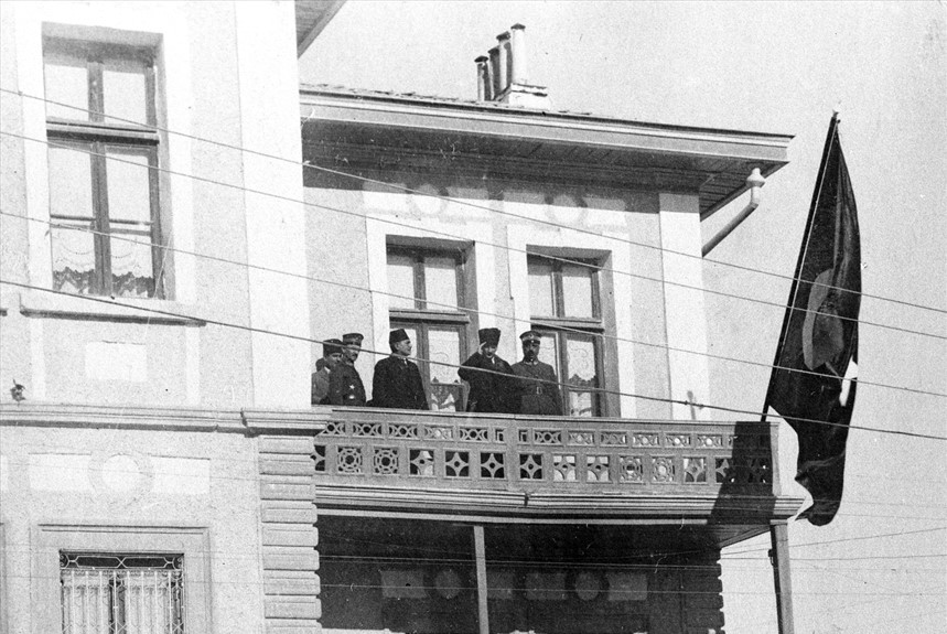 Mustafa Kemal Atatürk, 1920 yılında Ankara Garı`ndaki İdare Binası`nın balkonunda. (Arşiv)
