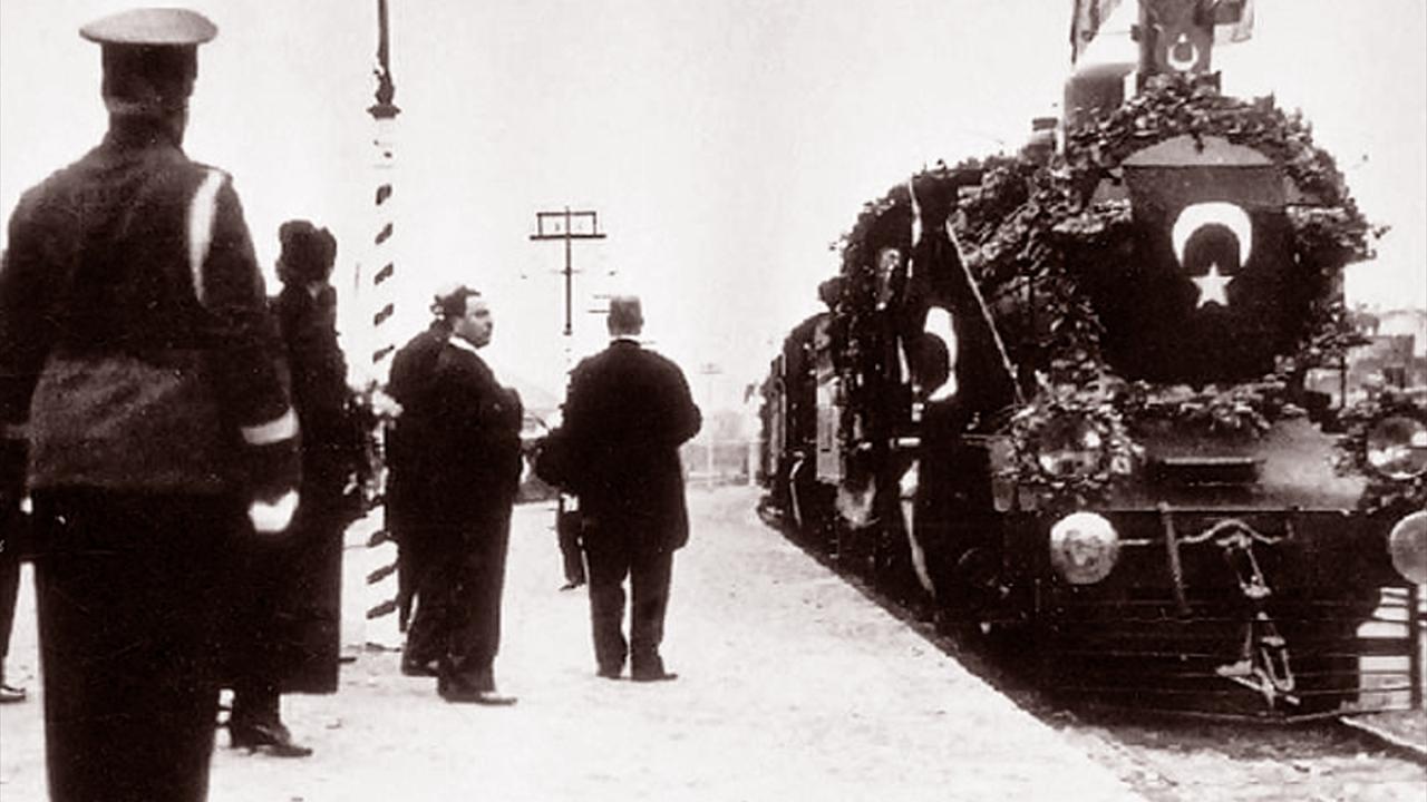 Mustafa Kemal Atatürk`ün, 20 Şubat 1923`te yurt gezisinden dönüşte Ankara Garı`nda karşılanışı. (Arşiv)
