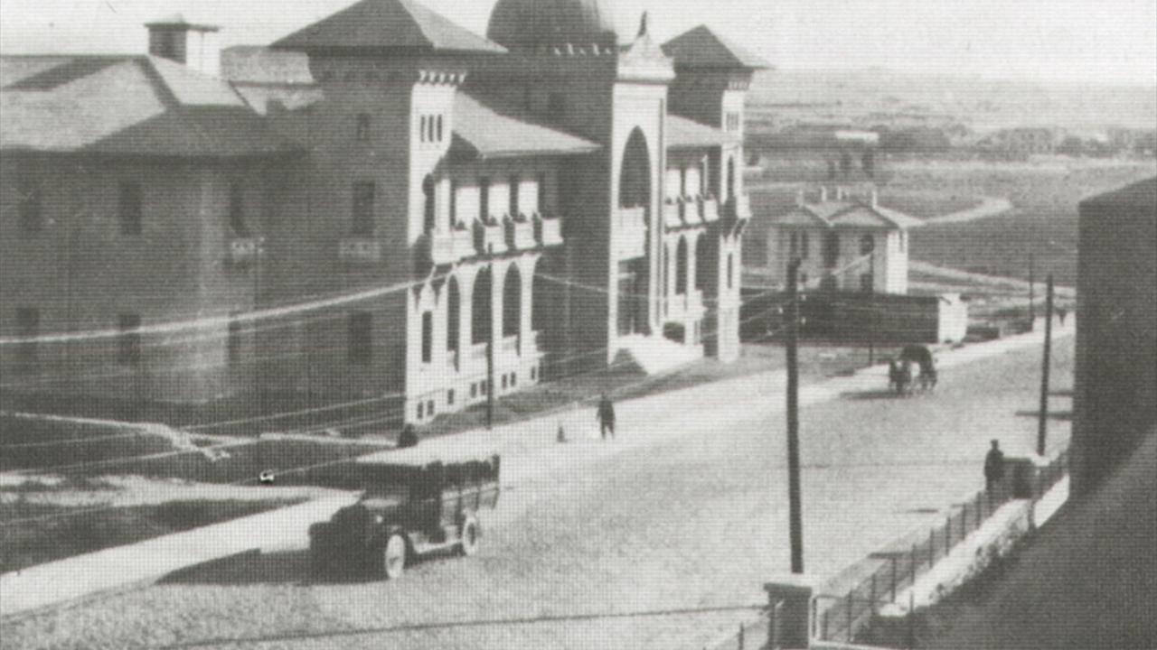 1937 yılında Ankara toptancı sebze-meyve hali girişi, geride yer alan bina bugünkü Adliye Sarayı`nın yerindeki TMO Hububat Silosu. (Arşiv)