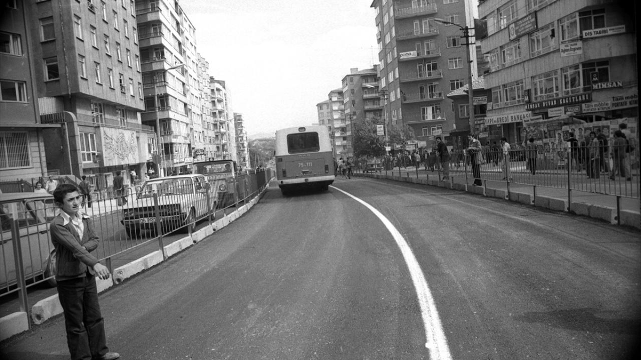 Fotoğrafta 1979 yılında Kızılay`da yer alan otobüs durakları görülüyor. (Arşiv)
