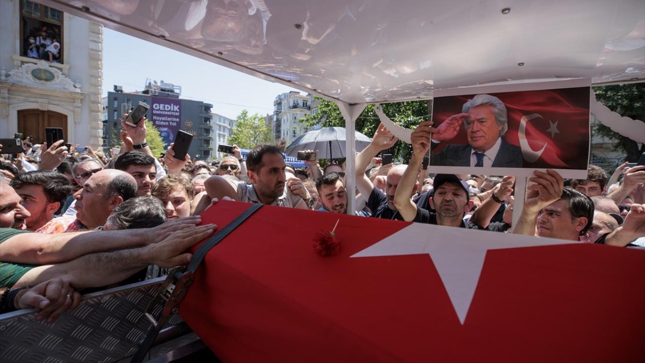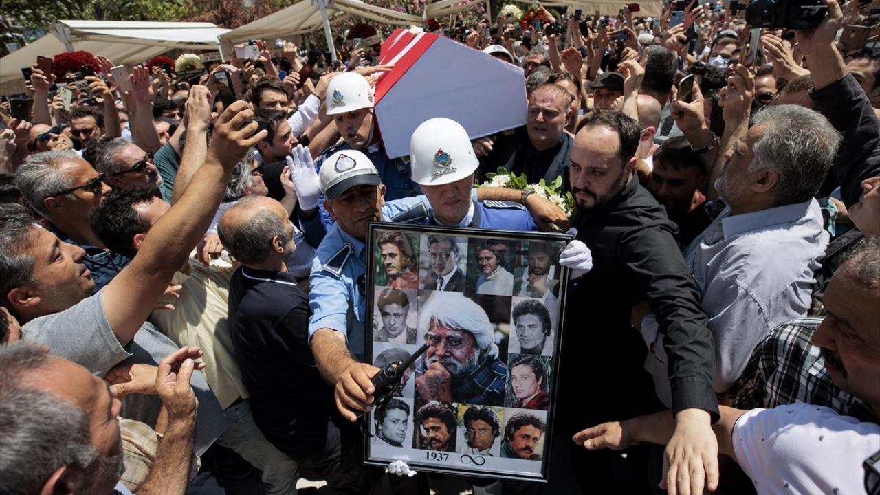 Cenaze namazına Kültür ve Turizm Bakanı Mehmet Nuri Ersoy (ortada), İstanbul Valisi Ali Yerlikaya (sağ 2), İBB Başkanı Ekrem İmamoğlu (sol 2), oyuncu Ediz Hun (sol 3) ve Arkın`ın oğlu Murat Arkın (sağda) da katıldı.