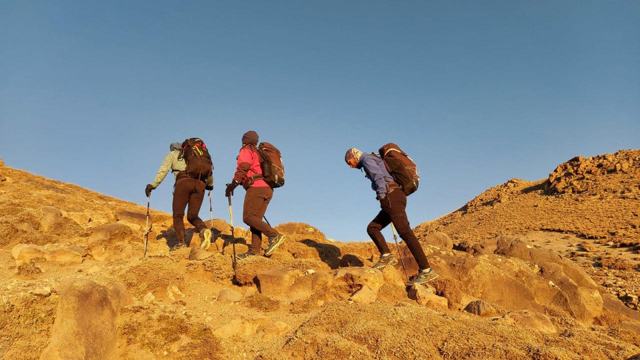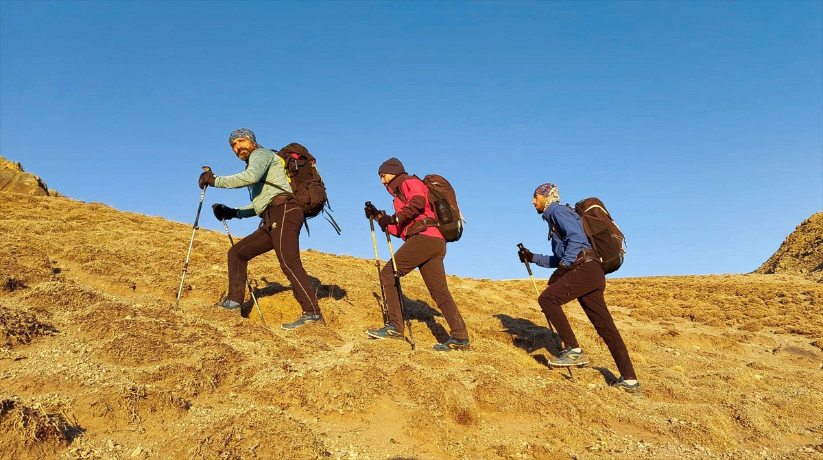 Ardından araçla Nemrut Dağı`nın olduğu bölgeye geçen dağcılar, 1 saatte zirve yaptı.