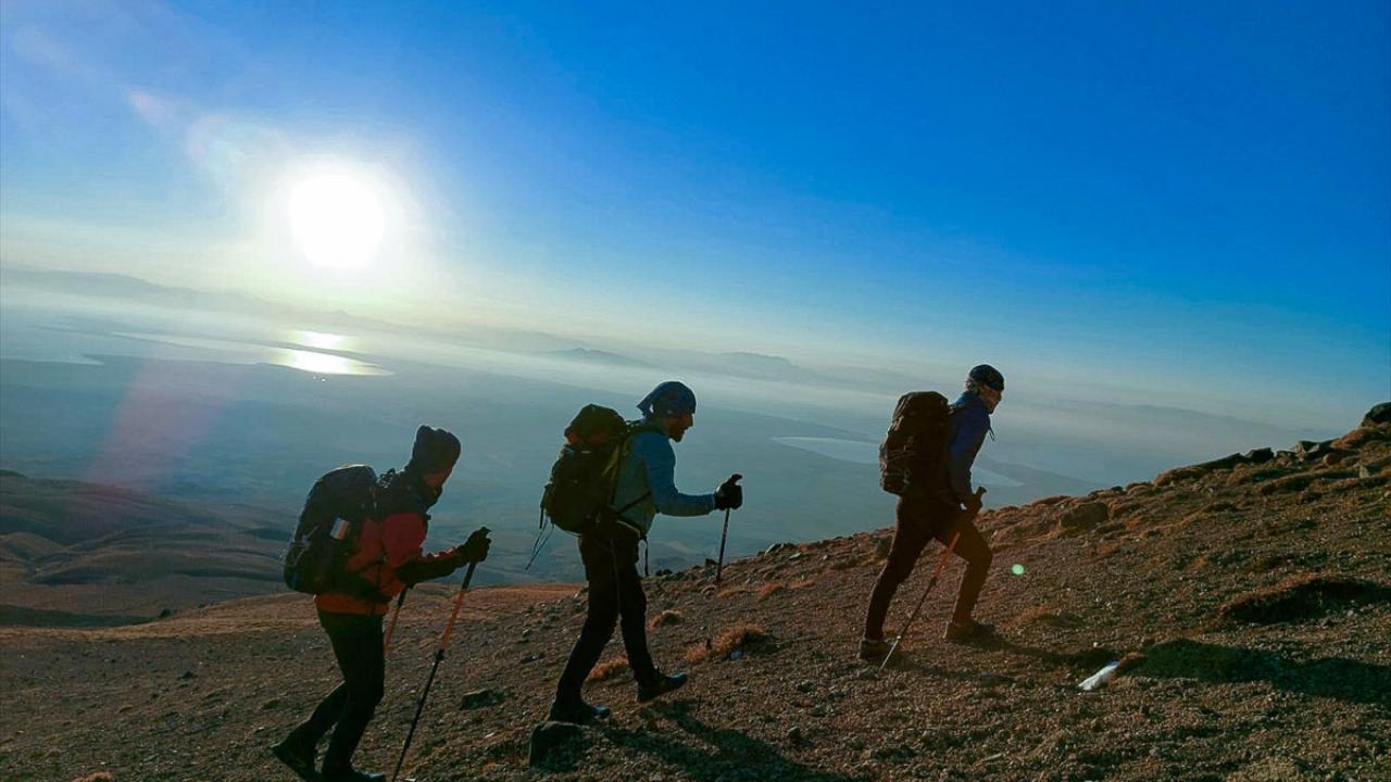 Van Yüzüncü Yıl Üniversitesi Dağ Sporları Topluluğu üyesi bir grup dağcı, aynı günde 4 bin 58 rakımlı Süphan ve 2 bin 920 rakımlı Nemrut dağlarında zirveye çıktı.