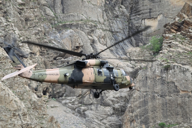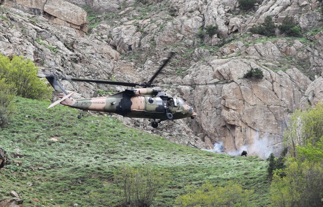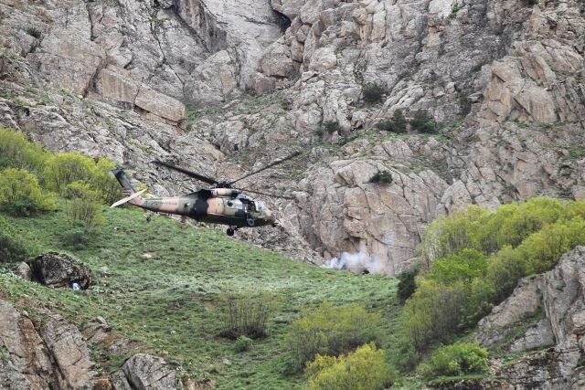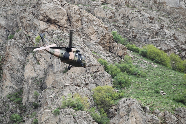 Hakkari'de ot toplamak için çıktığı dağda mahsur kalan biri yaralı 3 kişi askeri helikopterle kurtarıldı.