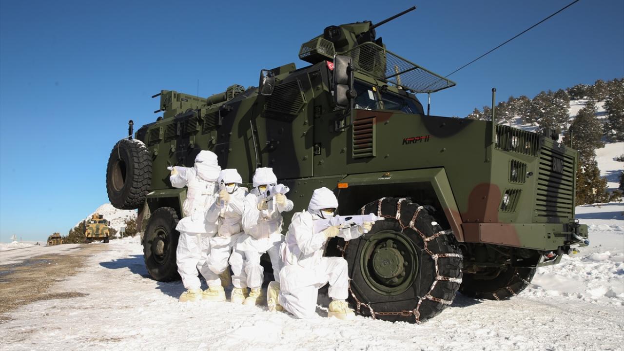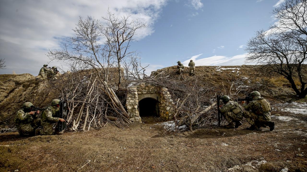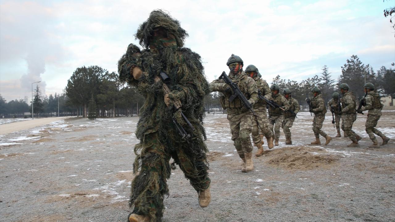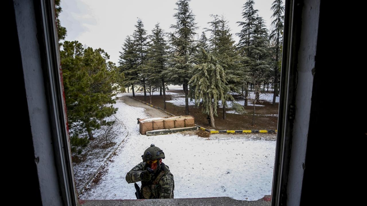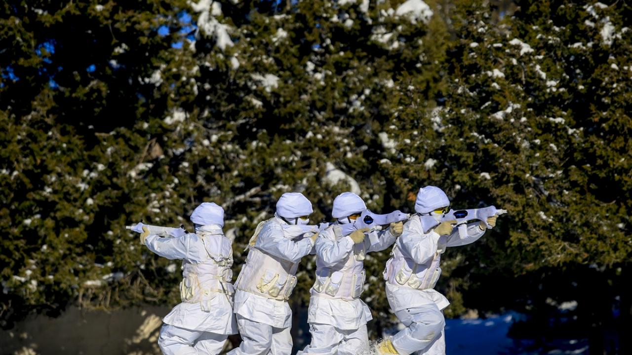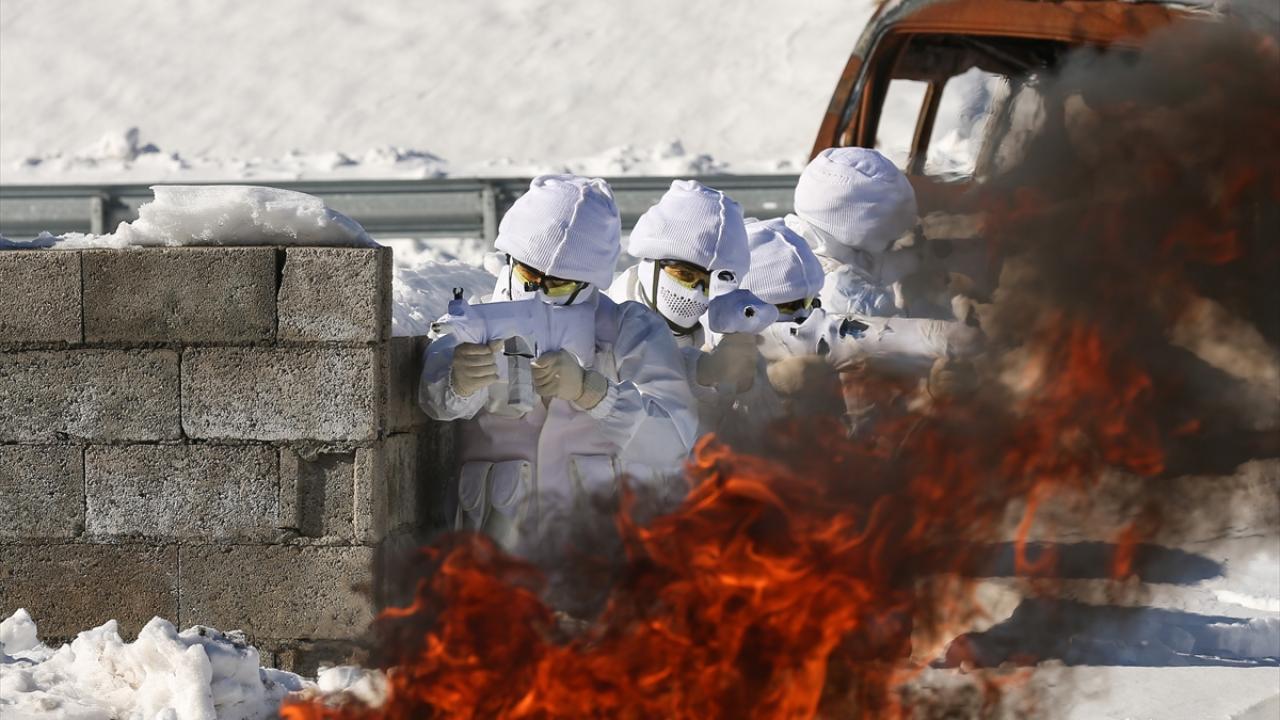 Dondurucu soğukta tamamen beyaz kıyafet ve silahlarındaki beyaz kamuflajla karda adeta görünmez hale gelen komandolar, karlı arazi üzerinde oluşturulan meskun mahal eğitim arazisinde düşman tuzaklarını da imha etti.