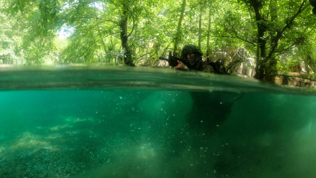 Bazen bellerine kadar gelen suyun içinden geçerek düşman bölgesine sızan komandolar, hiç beklenmedik anda ortaya çıkarak hedefi yok ediyor.