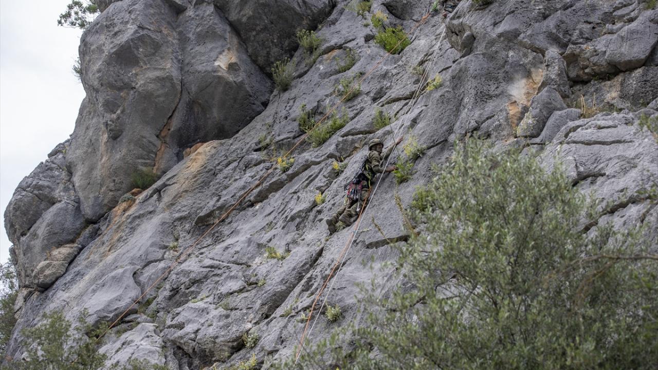Komandolar, eğitimlerde kurdukları ipli düzeneklerle ağaçlara ve dik yamaçlara tırmanma noktasında üstün yeteneklere sahip olarak göreve hazır bulundukları mesajını verdi.