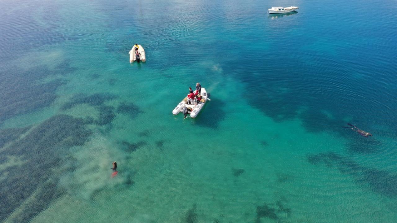 Yaklaşık 2 saat süren çalışma dron ile havadan, su altı kamerasıyla da deniz dibinden görüntülendi.
