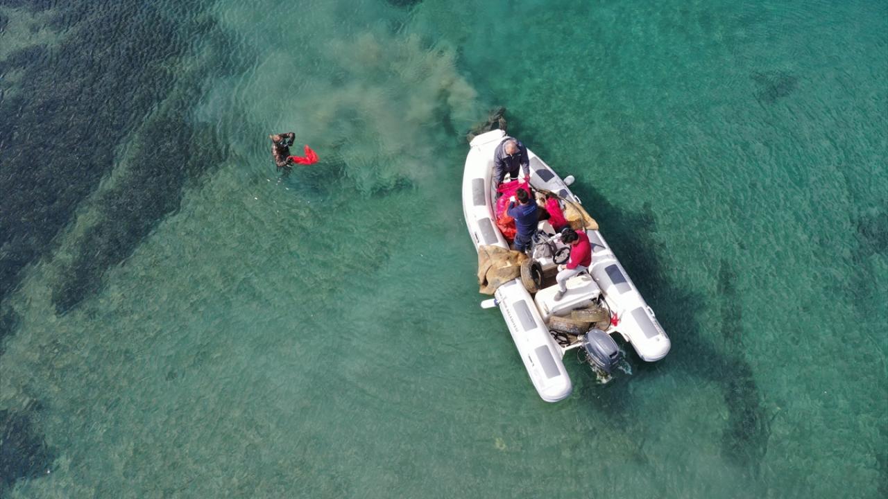 Etkinlikte gönüllü dalgıçlar, denize dalarak dipteki atıkları temizledi.