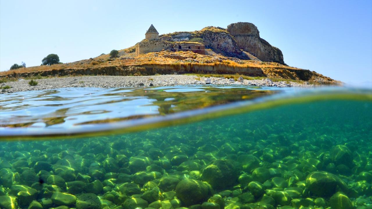 Su altı belgesel yapımcısı ve görüntü yönetmeni Tahsin Ceylan ile ekibi, Van Gölü'ndeki Çarpanak Adası'na ulaşımın sağlanması için yapılan ve yıllar önceki yükselme nedeniyle büyük bölümü suyun altında kalan 1 kilometrelik antik yolda yürüdü.