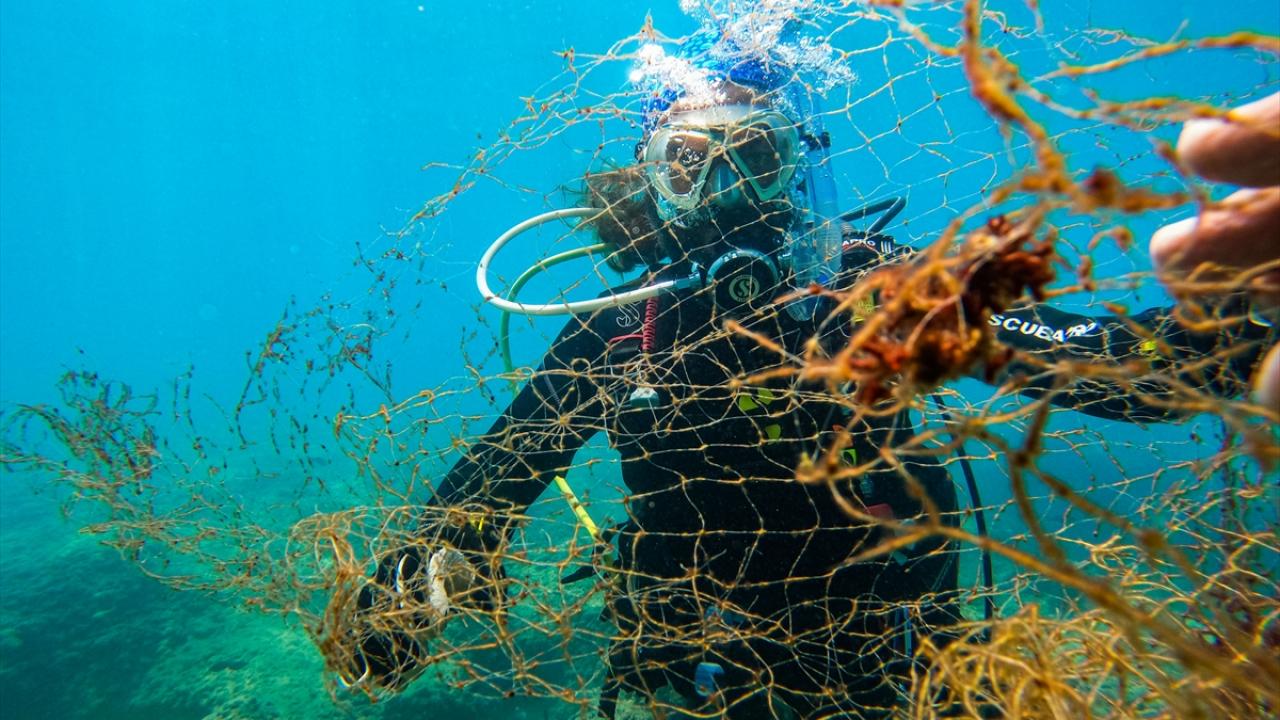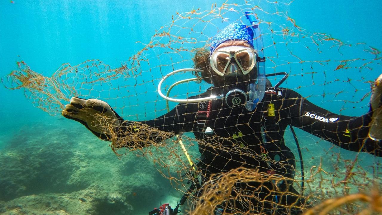 Mersin'in Silifke ilçesi sahilinde dalış yapan 10-12 kişilik gönüllü dalgıç grup, "sudaki katiller" olarak adlandırdıkları canlı yaşamını tehdit eden hayalet ağlar ile çeşitli plastik atıklar ve metal eşyaları topluyor.