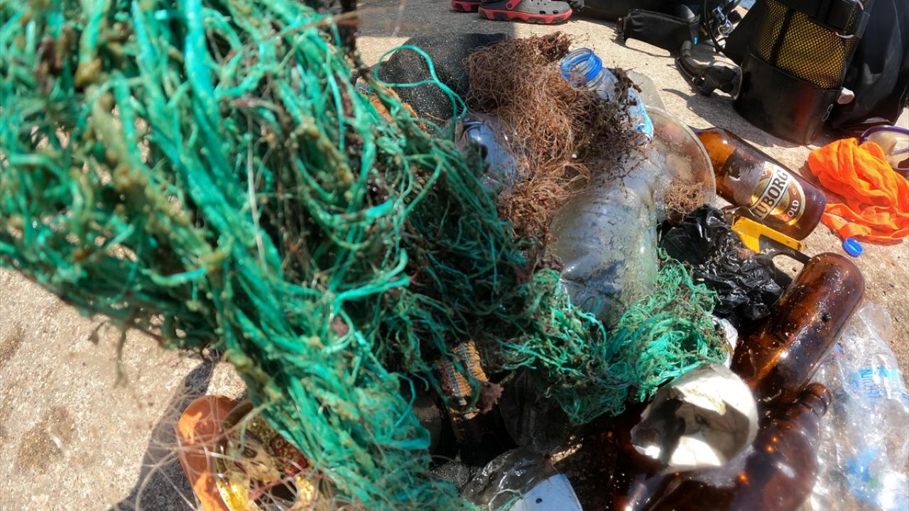Yaklaşık 2 kilometrelik sahil şeridinde, su altını çeşitli atıklardan temizleyerek canlıların yaşamını korumayı amaçlayan dalgıçlar, yaklaşık 3 saat süren çalışmalarında "sudaki katiller" olarak adlandırdıkları hayalet ağları, plastik atıkları, metal eşyaları ve çeşitli çöpleri sudan çıkarıyor.