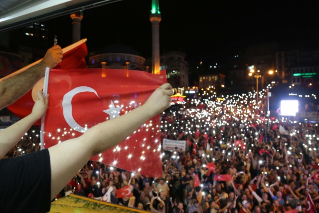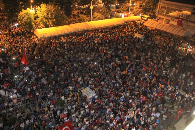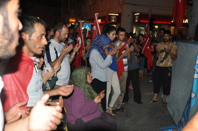 FETÖ'nün darbe girişimine karşı sokaklara çıkan vatandaşlar namaz kılıp dua ederek, demokrasi için sabaha kadar nöbet tuttular.