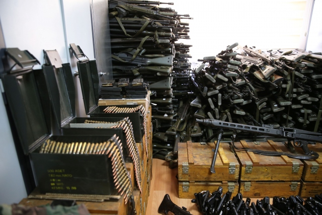 15 Temmuz Şehitleri Köprüsü ile Çengelköy ve Kuleli'de ele geçirilen silah ve mühimmatlar, Üsküdar İlçe Emniyet Müdürlüğü yerleşkesinde basına gösterildi.