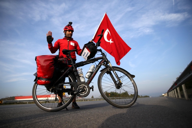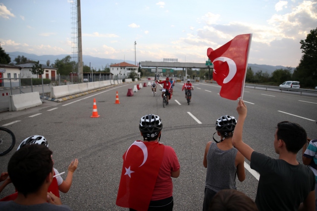 FETÖ darbe girişimine ve PKK terörüne tepki için Almanya'nın Münih kentinden Ankara'ya bisikletle yolculuğa çıkan Abdurrahman Serdar Çakmak, 23 günde 2 bin 500 kilometre yol katederek Düzce'ye ulaştı.