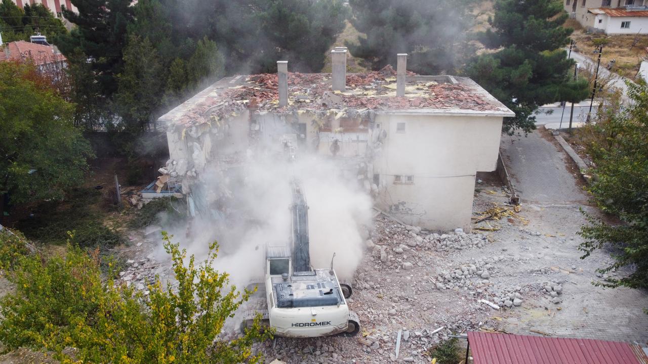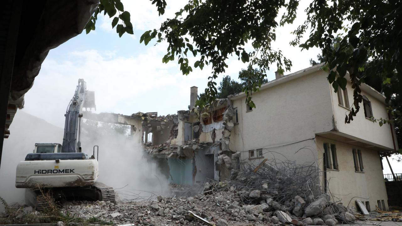 Bu kapsamda, ekiplerin çevresinde güvenlik önlemi aldığı Heyiketeği Mahallesi`ndeki 9 binanın yıkımı gerçekleştirildi.