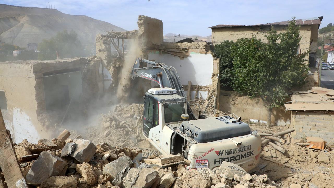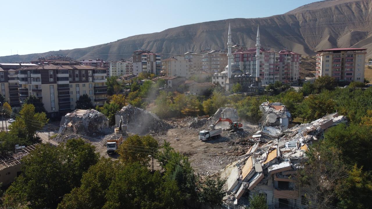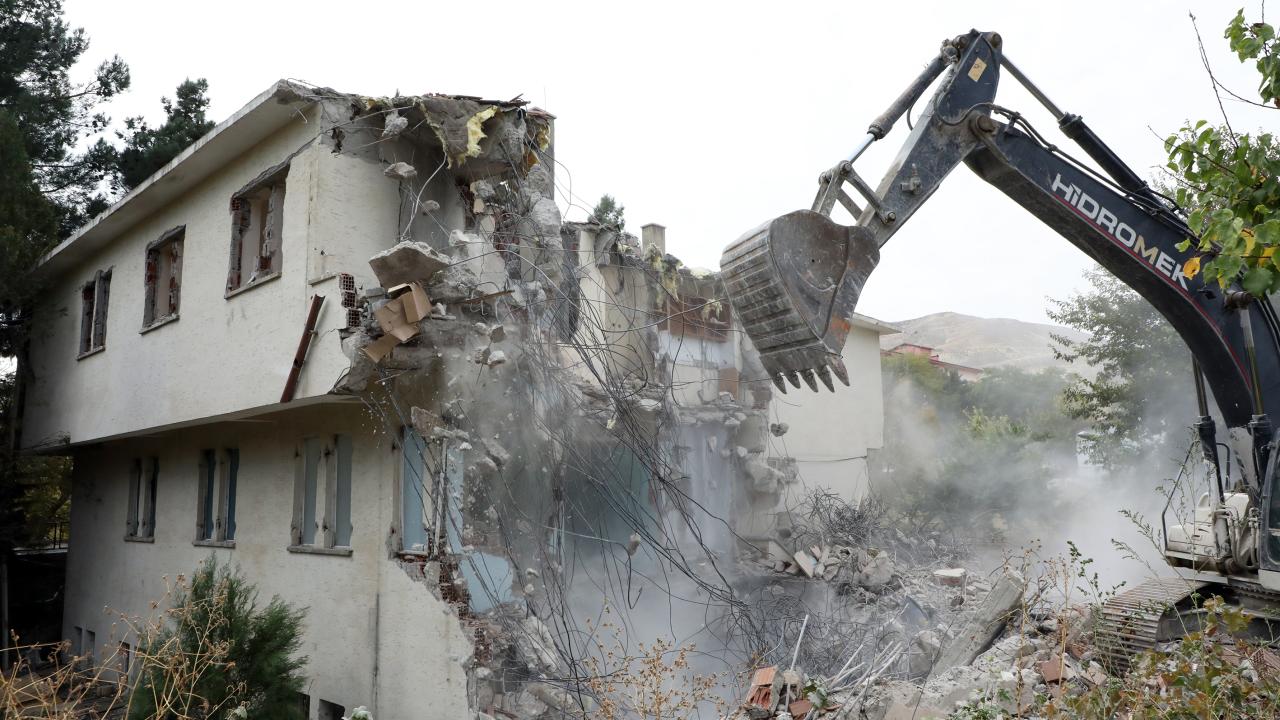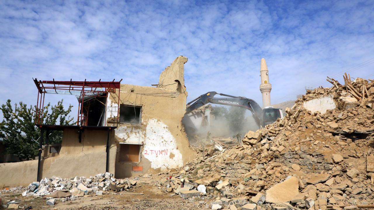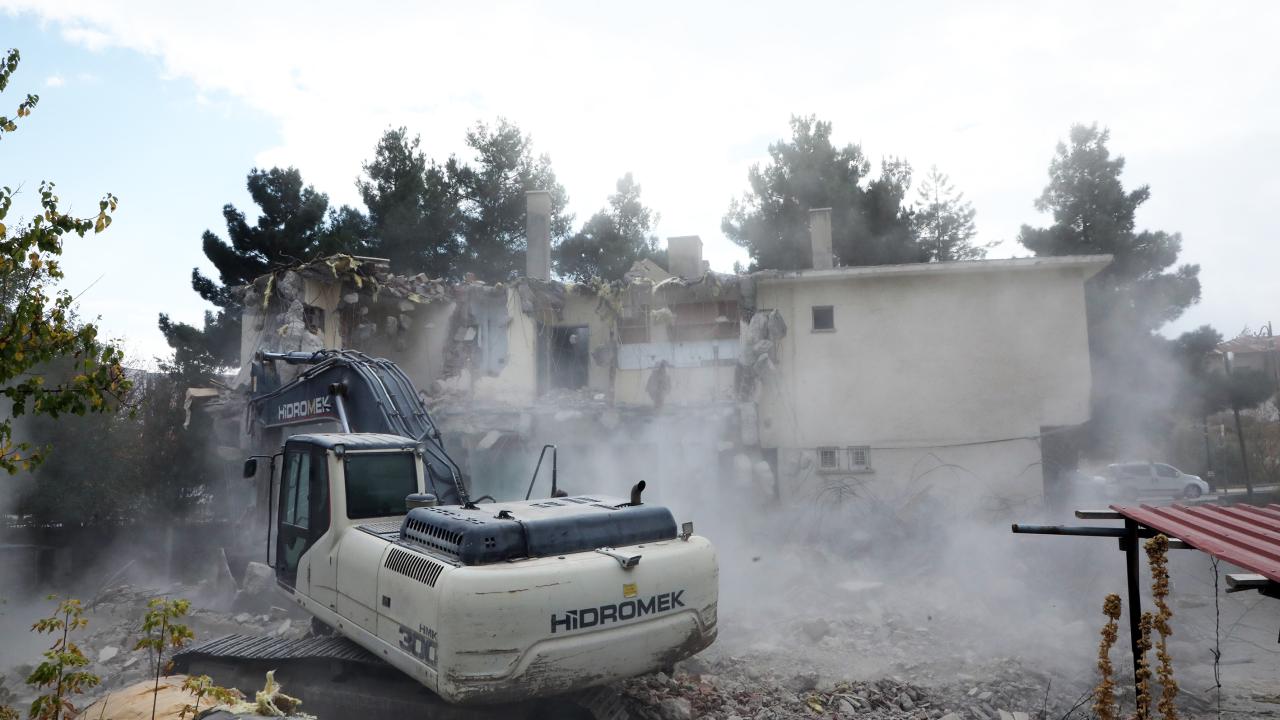Darende'de ağır hasarlı binaların yıkımı sürüyor