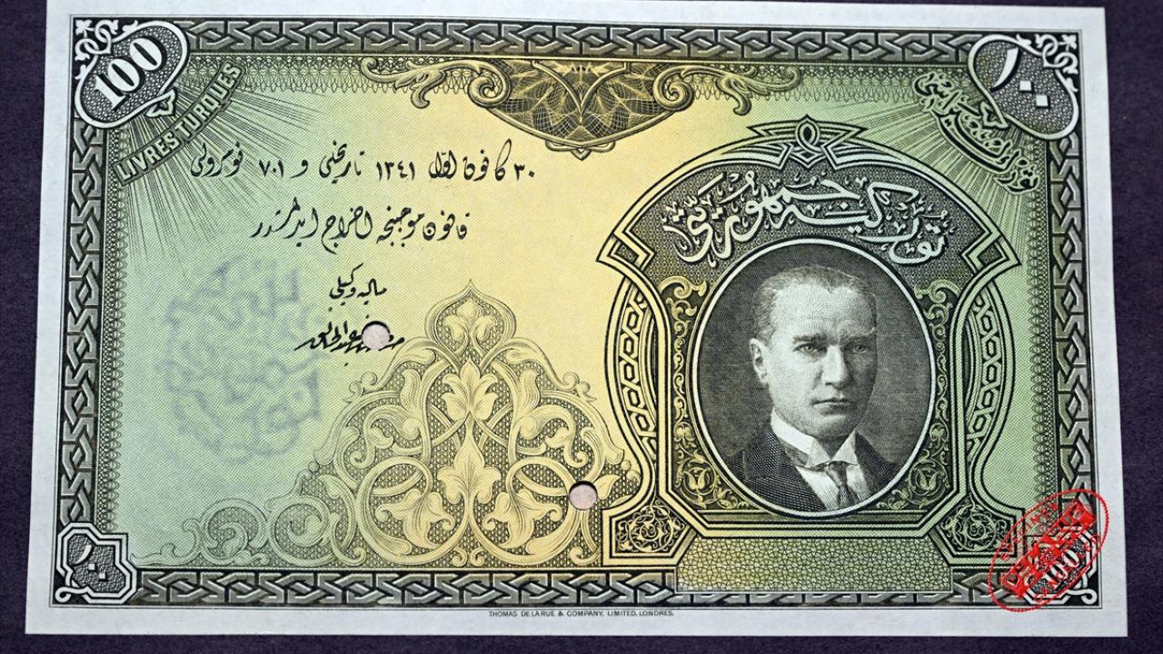 Cumhuriyet`in ilk 15 yılına ait kağıt paralar arasında, Fransız matbaa şirketi Thomas De La Ruse Company tarafından 1925`te Londra`da basılarak Ankara`ya gönderilen Osmanlıca ve Fransızca yazılı banknotlar yer alıyor. Bu paralar, Atatürk`ün emriyle basılan ilk banknotlar olarak dikkati çekiyor.