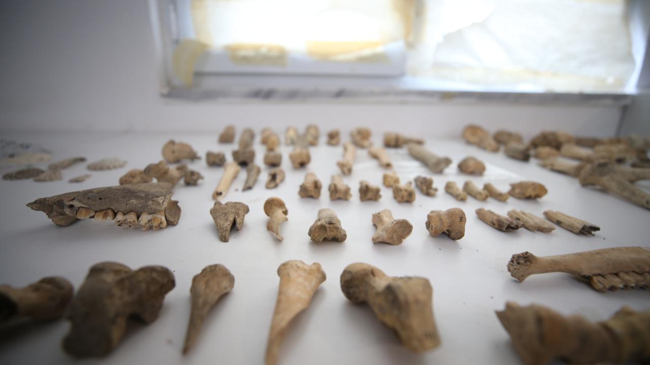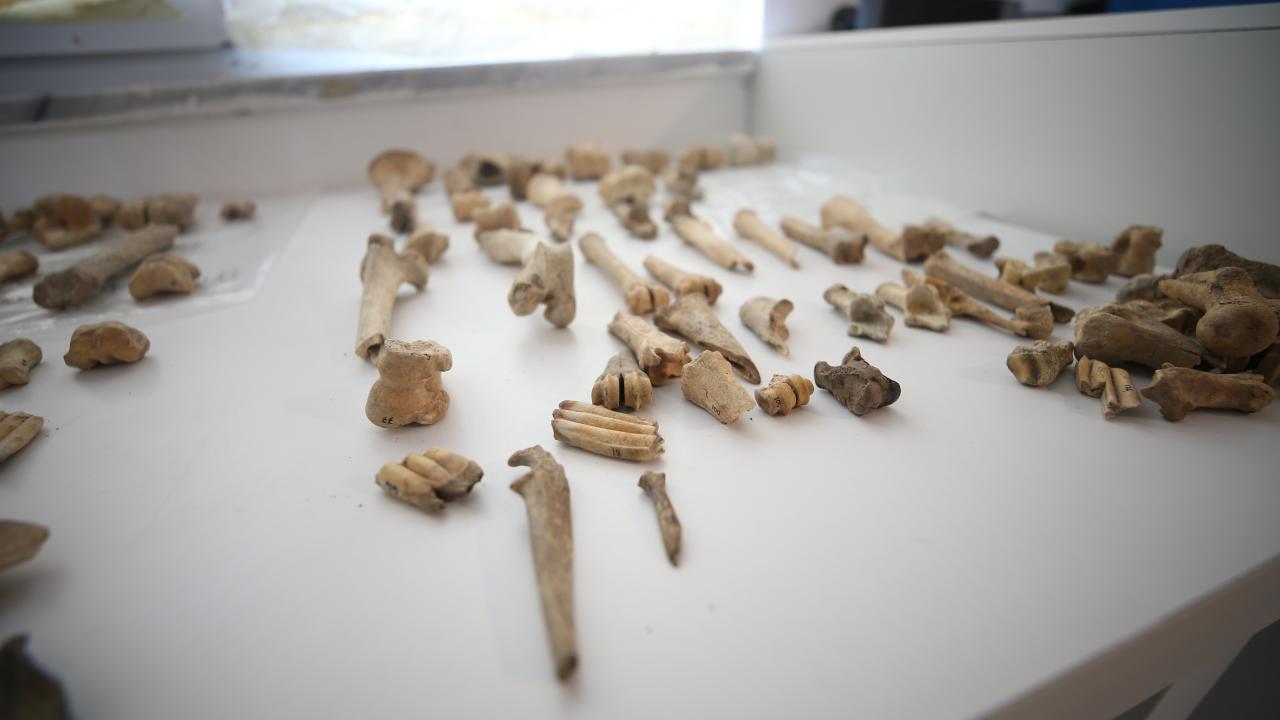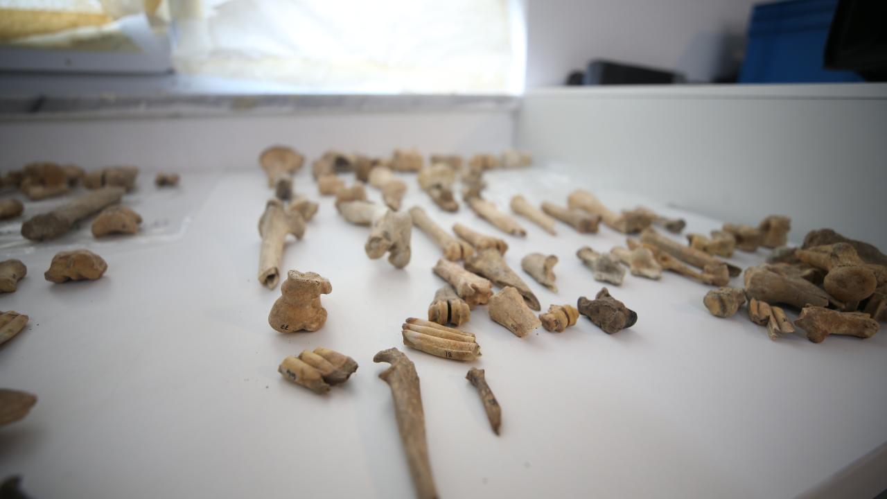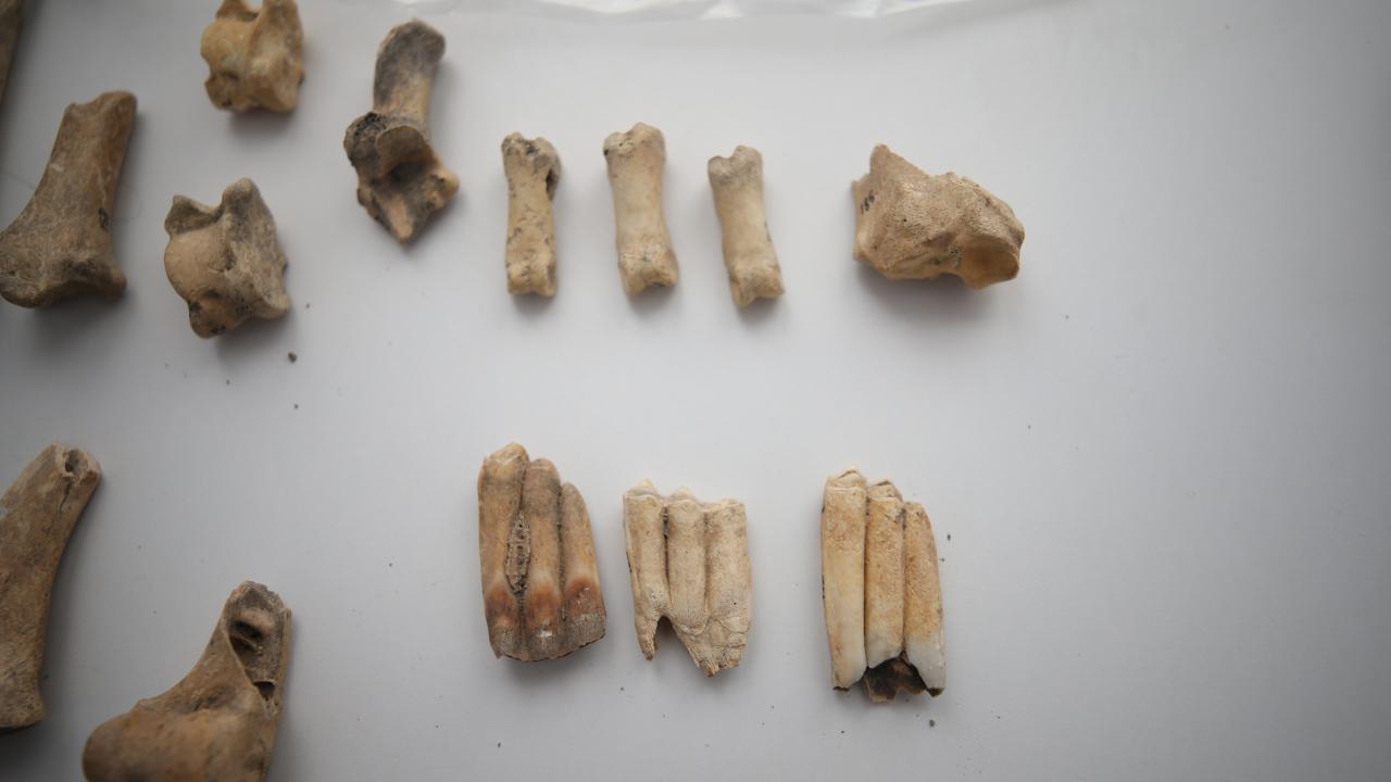 Ekibin penset ve spatül gibi diş hekimliğinde kullanılan küçük ve hassas aletlerle yaptığı çalışmalarda, sığır, koyun, keçi, domuz ve su kuşlarına ait çok sayıda kemiğe rastlandı.