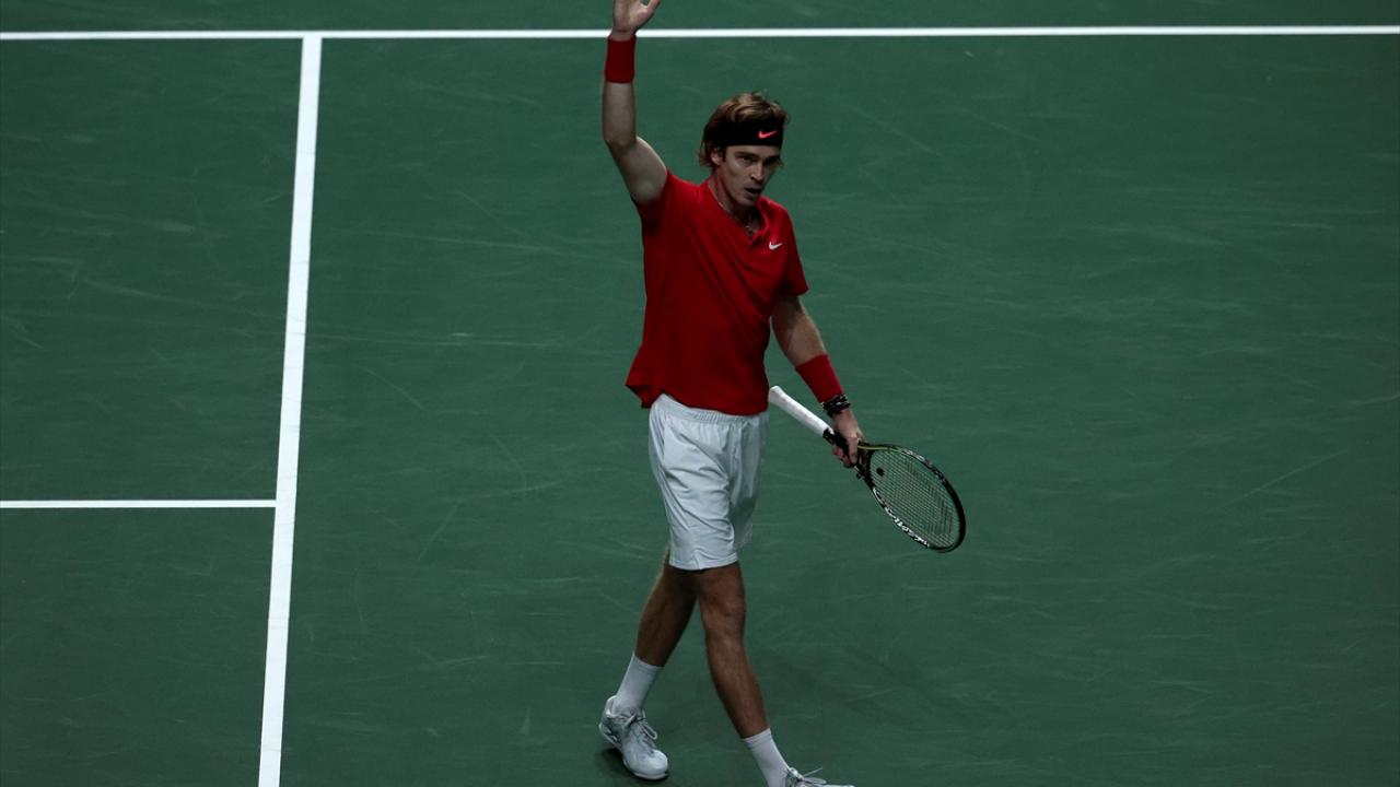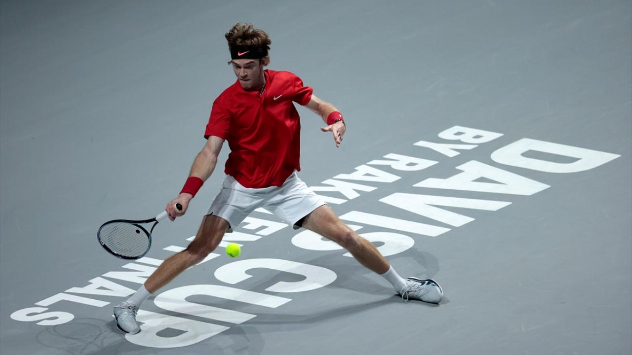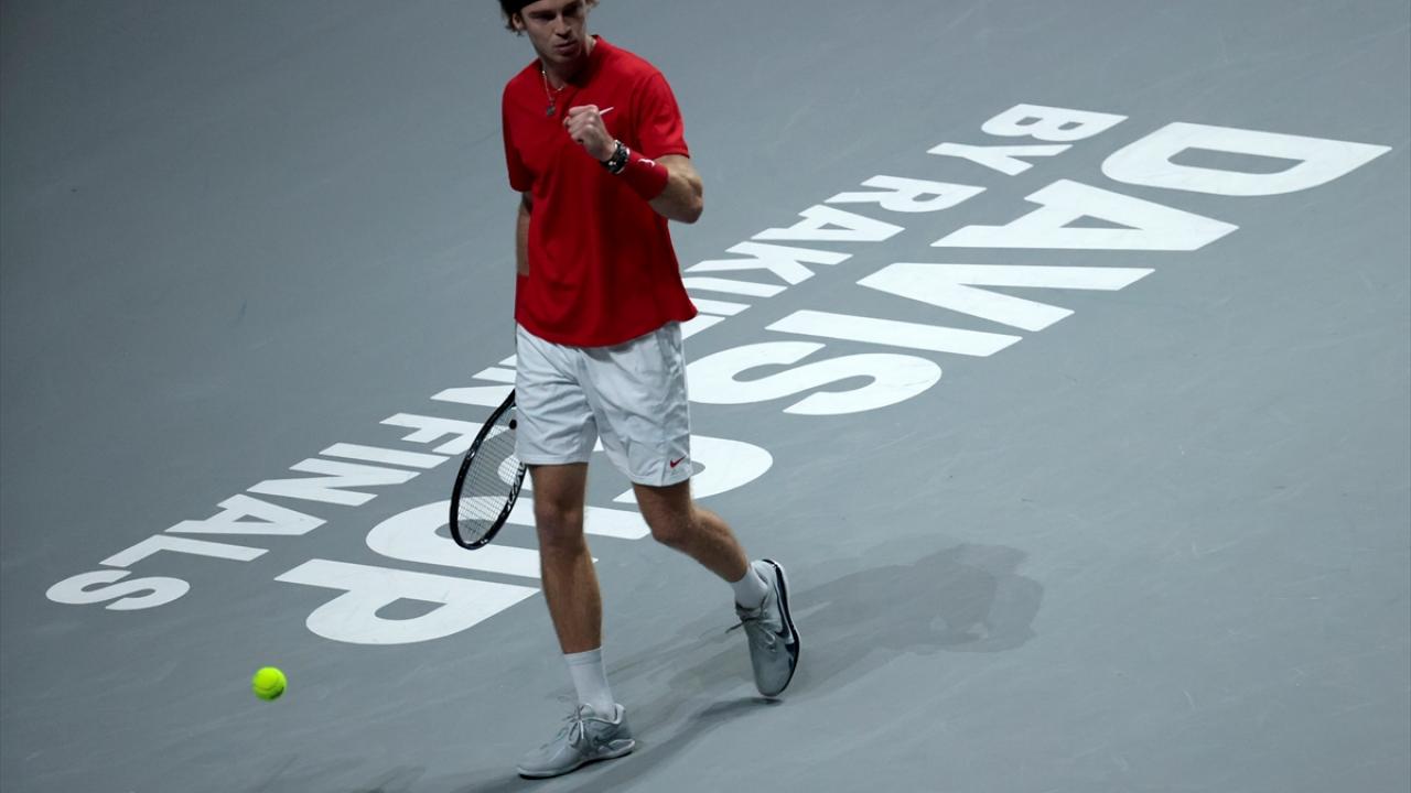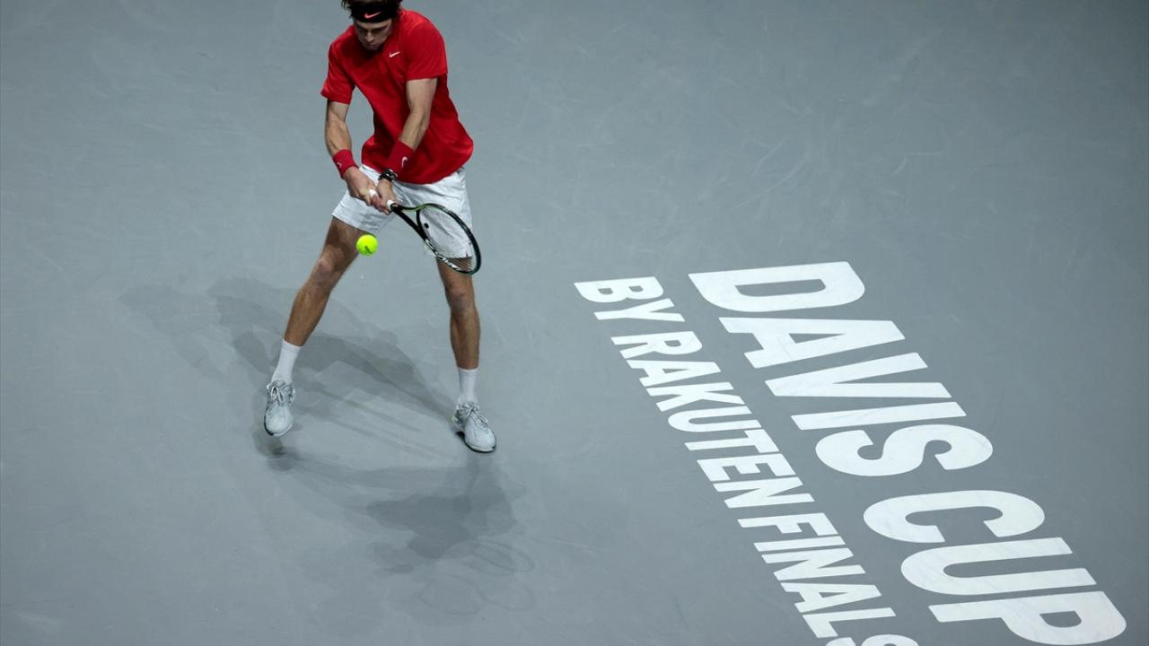 İspanya'nın başkenti Madrid'de yapılan Davis Cup Tenis Turnuvası'nın çeyrek final maçında, Rus tenisçi Andrey Rublev ile İsveçli tenisçi Elias Ymer, Madrid Arena’da karşılaştı.
