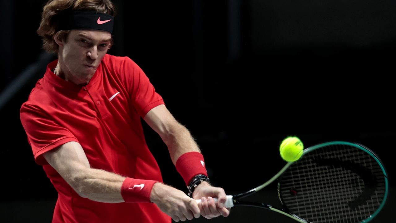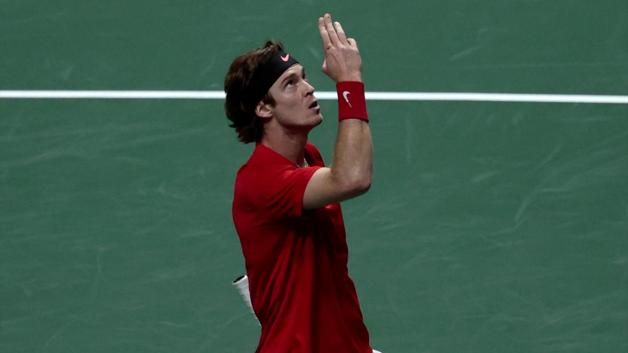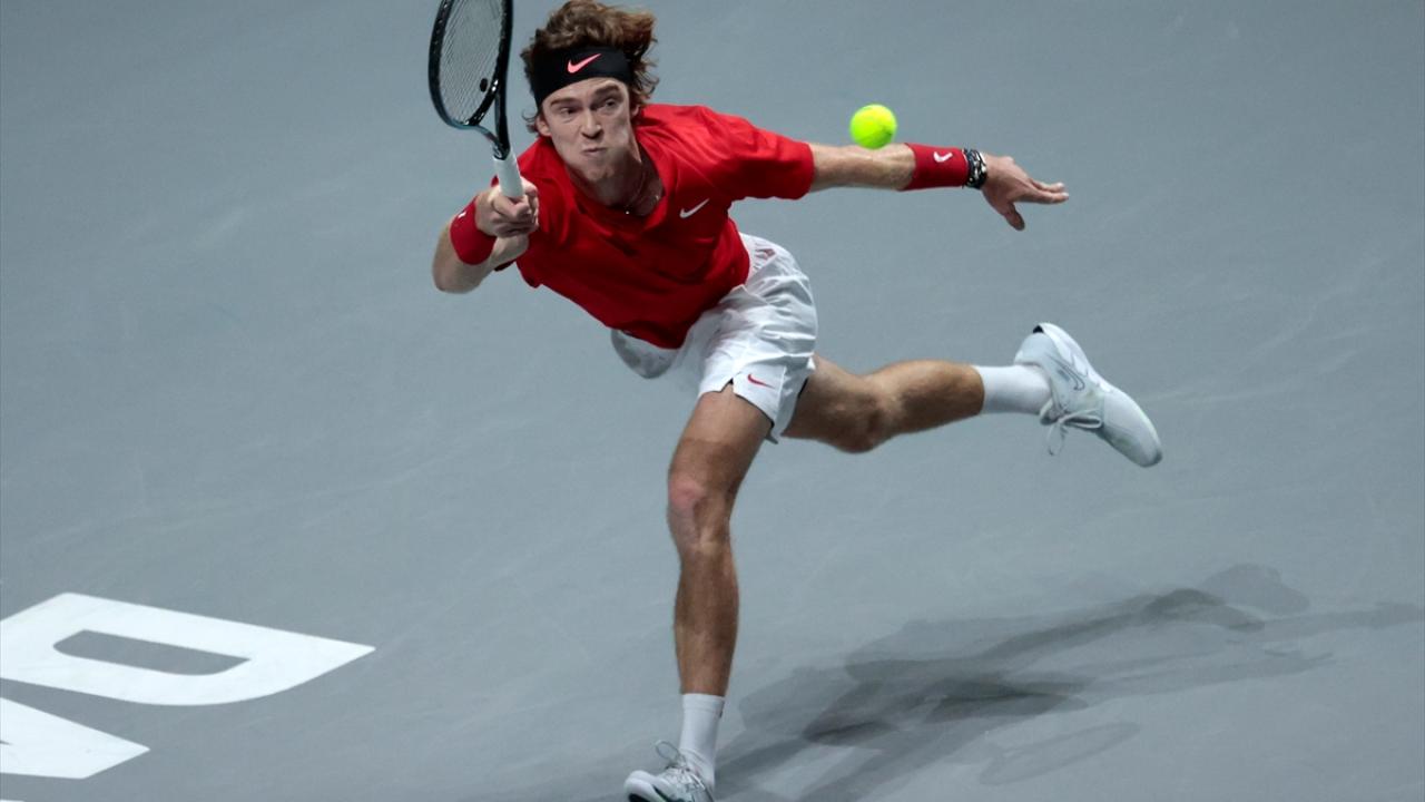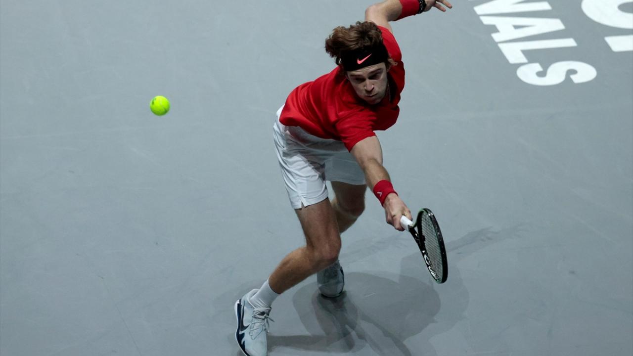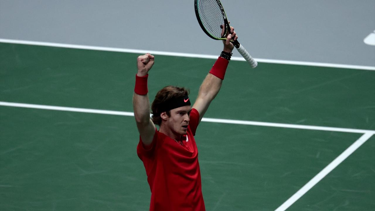 İspanya'nın başkenti Madrid'de yapılan Davis Cup Tenis Turnuvası'nın çeyrek final maçında, Rus tenisçi Andrey Rublev ile İsveçli tenisçi Elias Ymer, Madrid Arena’da karşılaştı.