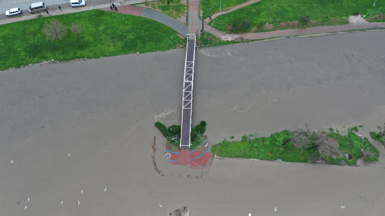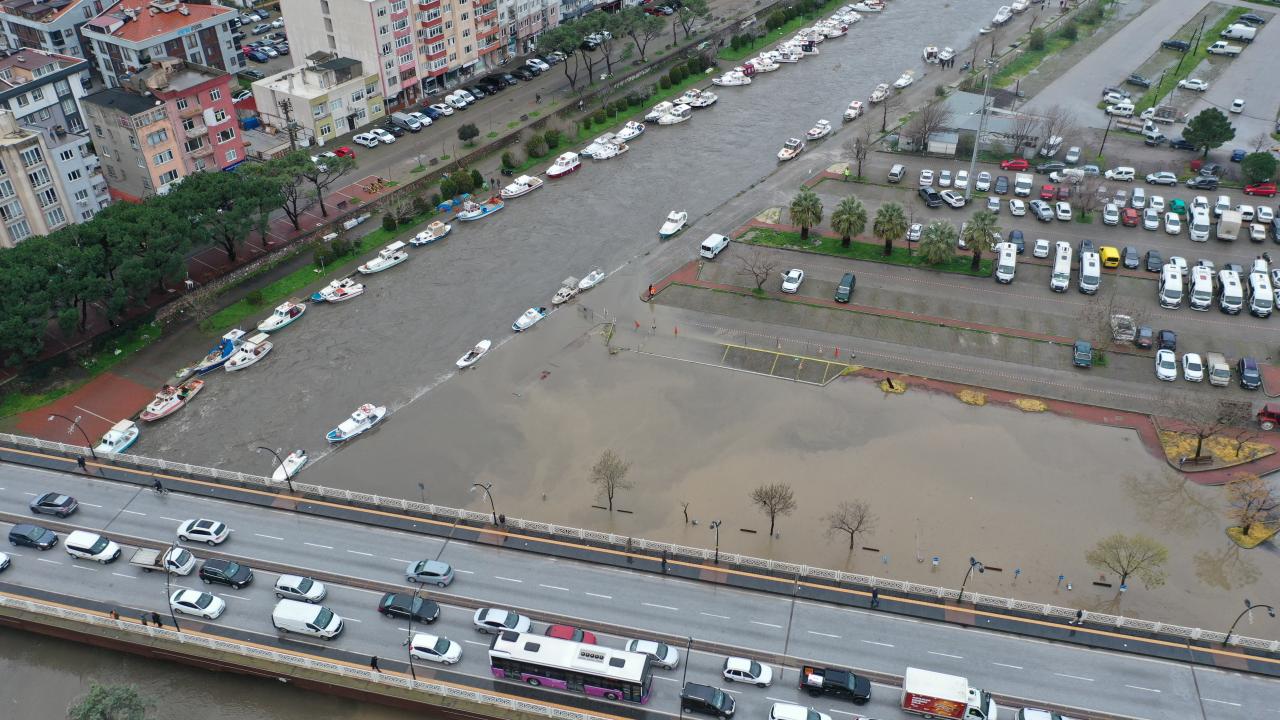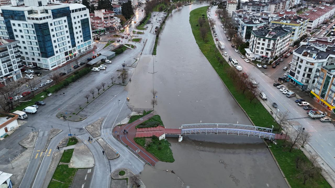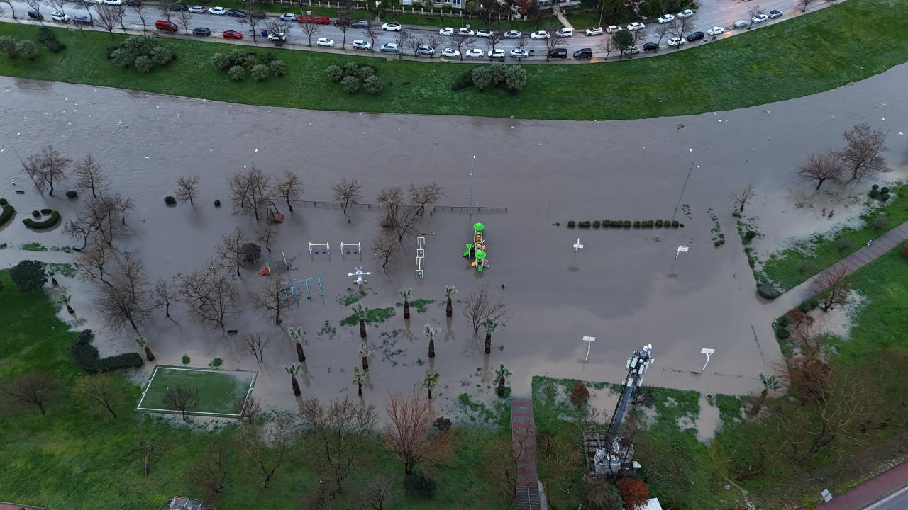 Çaydan çevreye yayılan sular yürüyüş yolları ve otopark alanının bir bölümüne kadar ulaştı. Bazı iş yerlerini su bastı.
