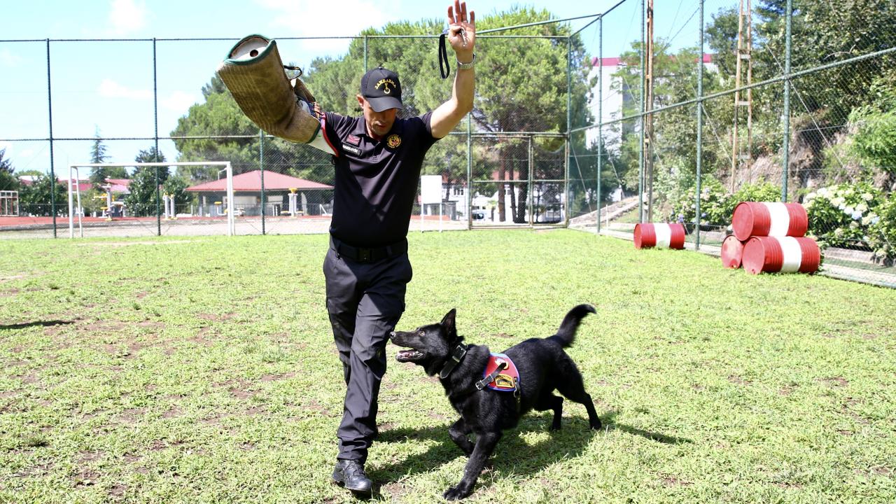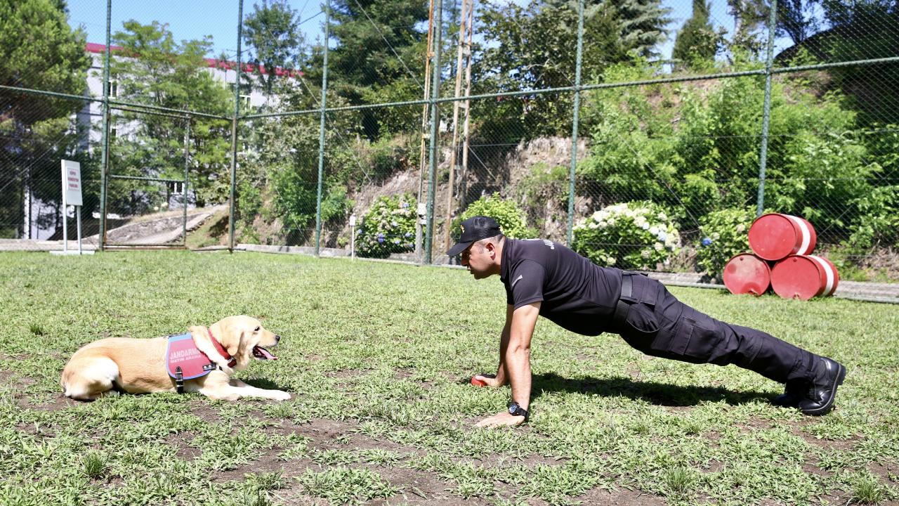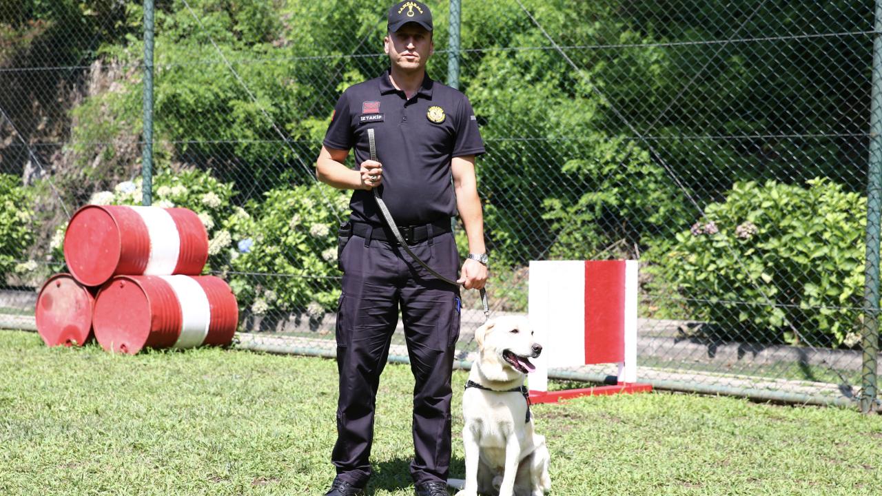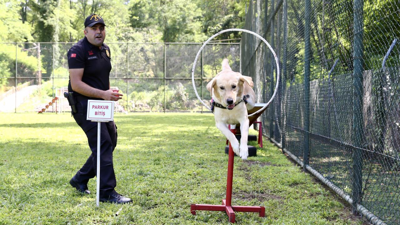 Giresun'da suçla mücadele ve arama kurtarma görevlerinde kullanılan dedektör köpeklerin her zaman formda olmaları için eğitimlerine aksatılmadan devam ediliyor.
