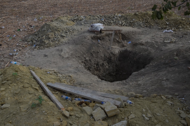 Tekirdağ'ın Malkara ilçesinde, Roma dönemine ait kalıntıların bulunduğu alanda define arayanlar tarafından açıldığı belirtilen çukur ve tünel bulundu.