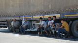 Irak'a yük taşıyan tır şoförleri araçların gölgesinde serinliyor
