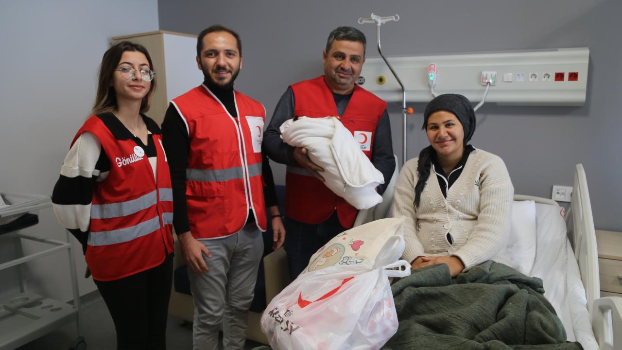 Türk Kızılay Defne Şubesi ekipleri de aileye çeşitli hediyeler verdi.