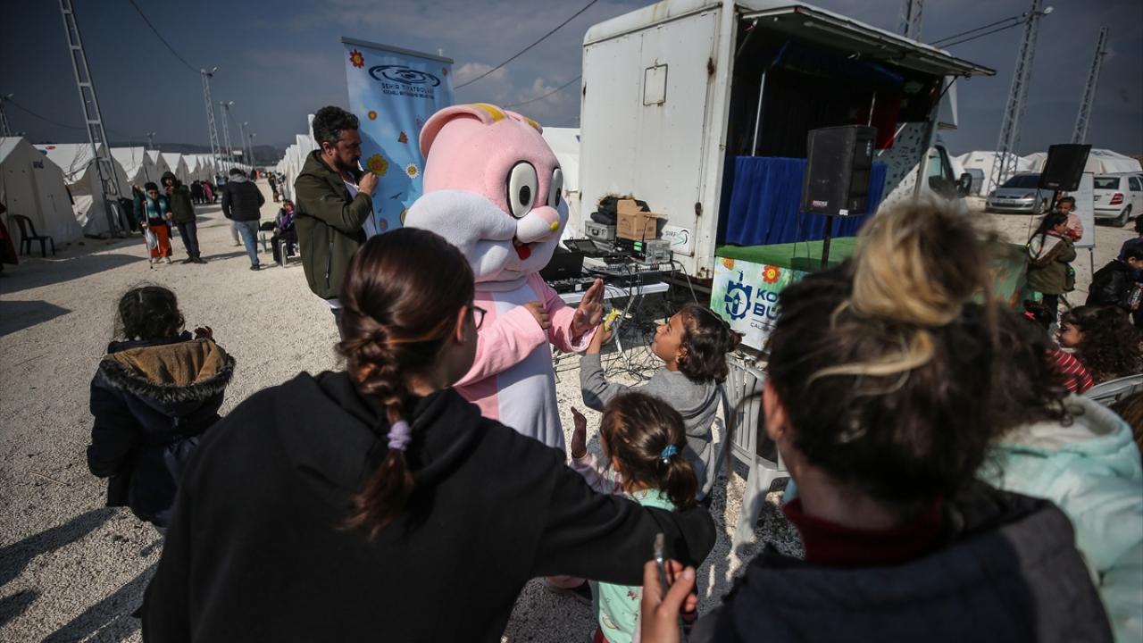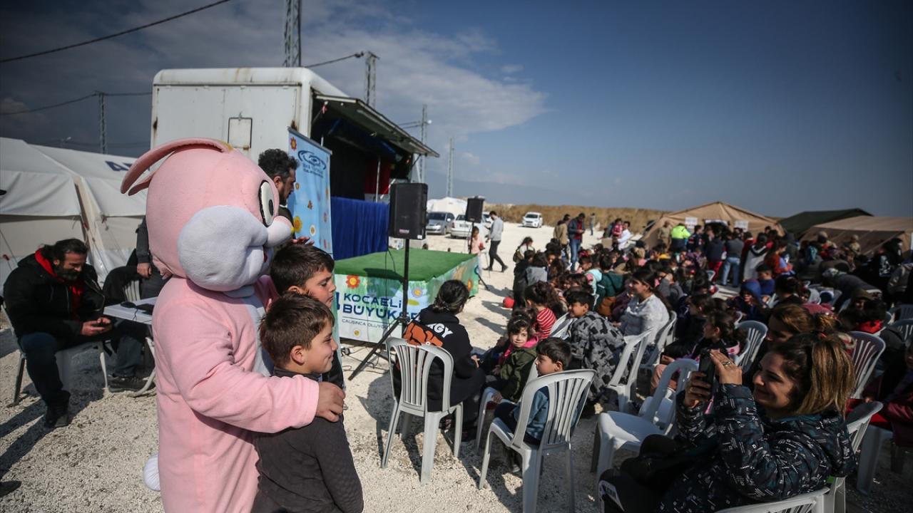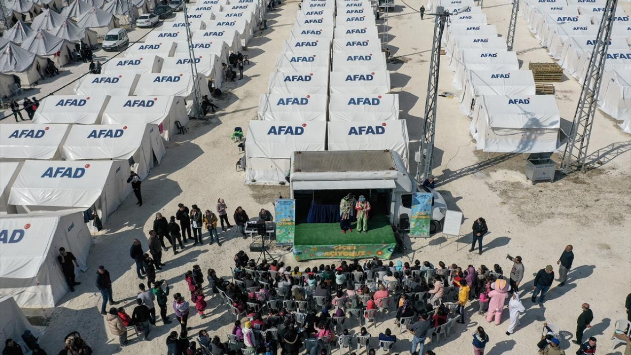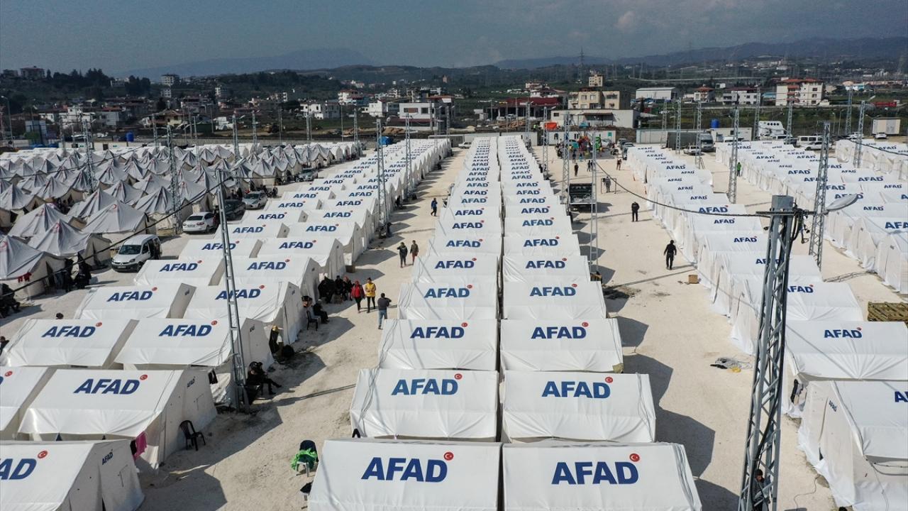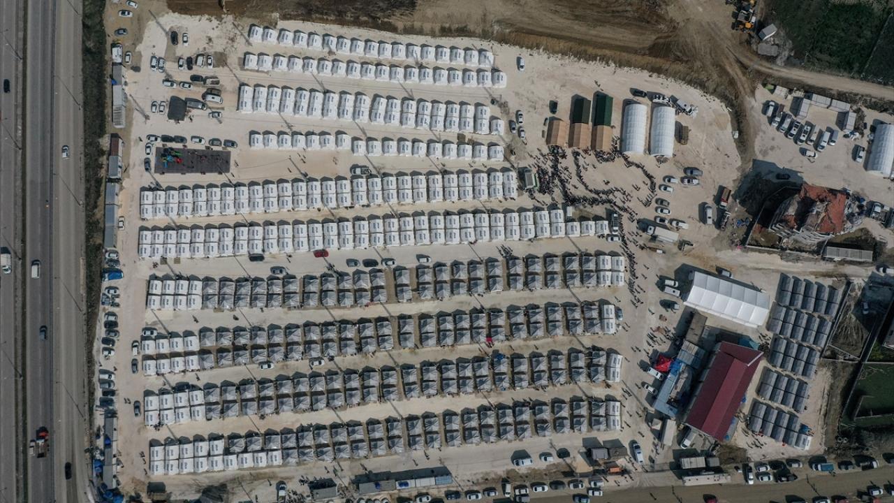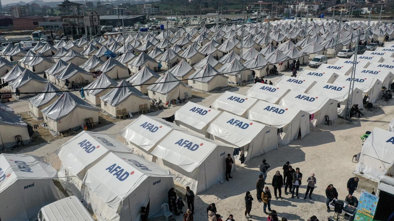 Hatay'ın Defne ilçesindeki AFAD ve Kocaeli Büyükşehir Belediyesi işbirliğiyle kurulan yaklaşık 500 çadırda depremzedelere duşa kadar her türlü imkan sunularak barındırılıyor.