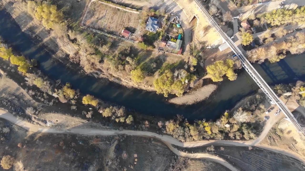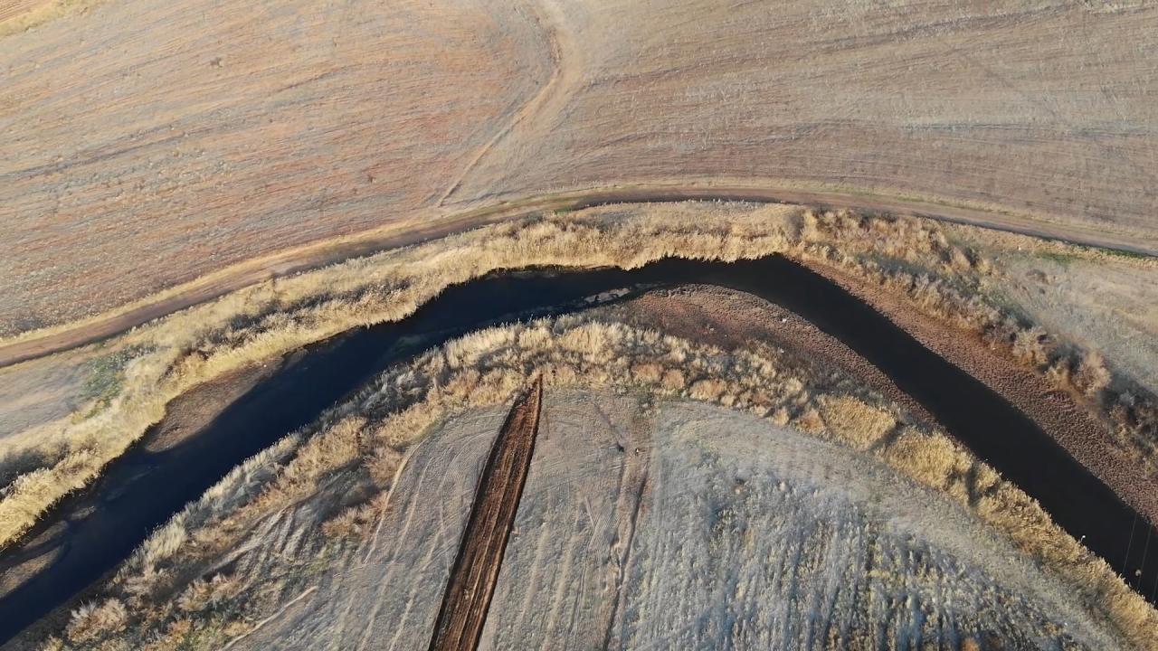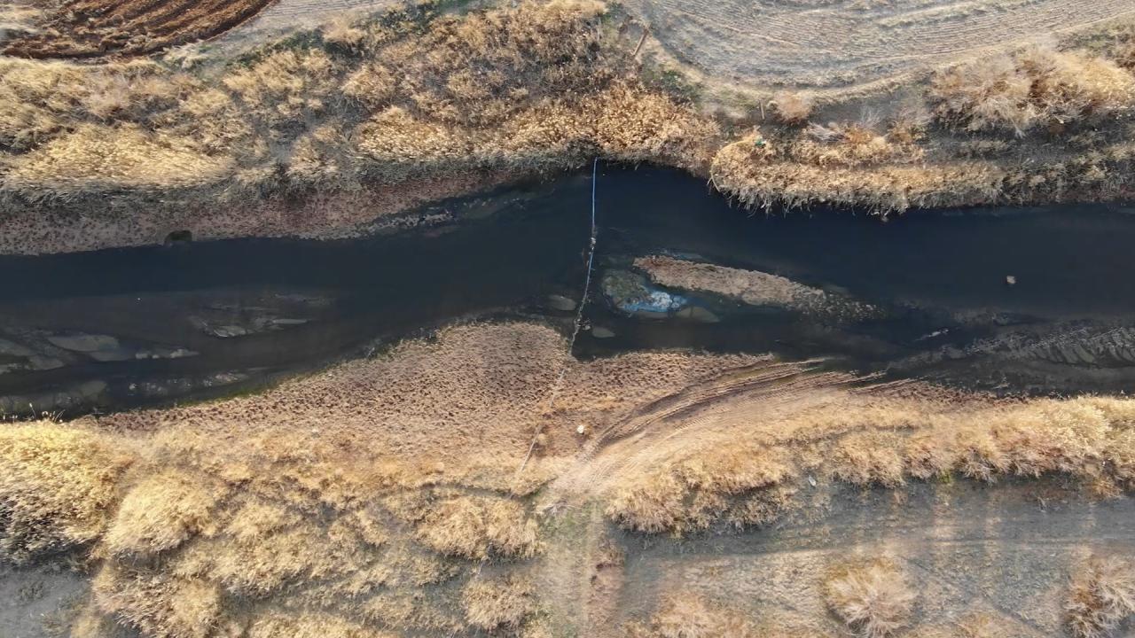 Susuz kalan ırmak yatağı dronla havadan görüntülendi.