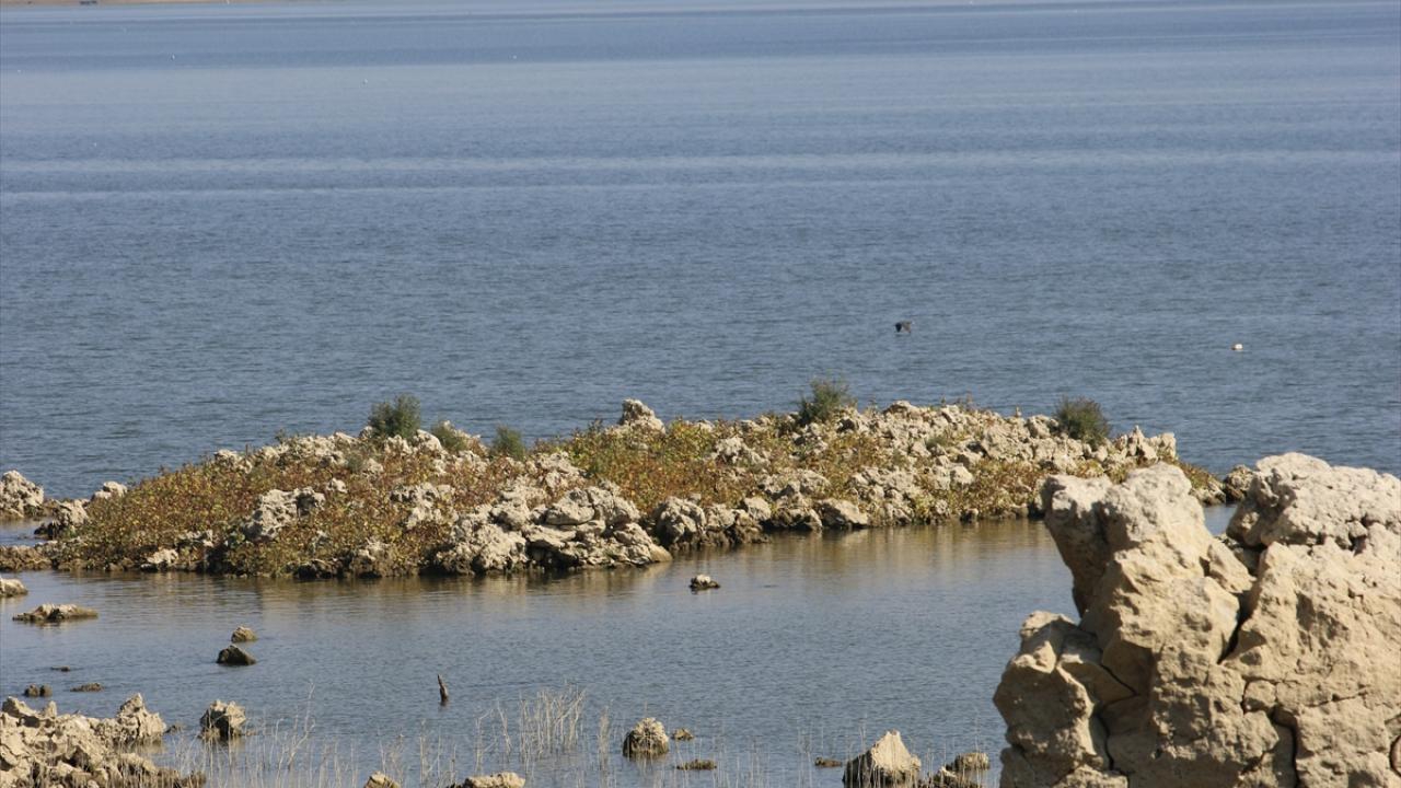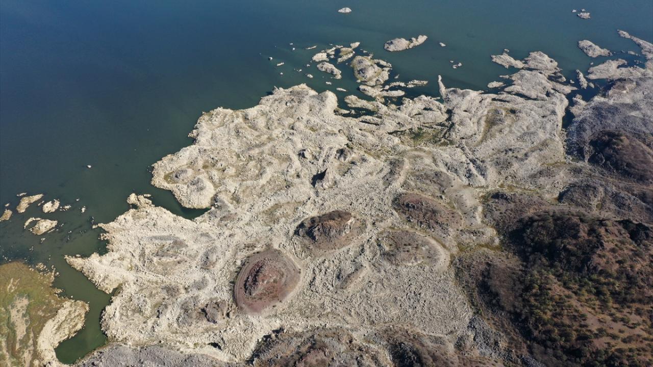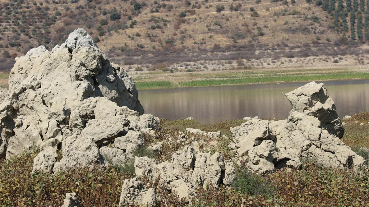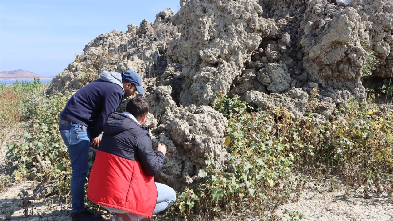 "Şu an Çakallar ve Sindel volkanlarından çıkan akıntının içinde duruyoruz. Baraj çekilince ortaya çıkan görüntünün, kayaçların uzun yıllar su altında kalmasından beyazlaştığını düşünüyoruz. Mevsimsel olarak akarsuların göle taşıdığı sedimentlerin çökelmesiyle ve burada çeşitli mikroorganizmaların ve kabuklu canlıların üzerinde yaşamlar oluşturmasıyla ortaya çıkan bir beyazlık olduğunu düşünüyoruz."