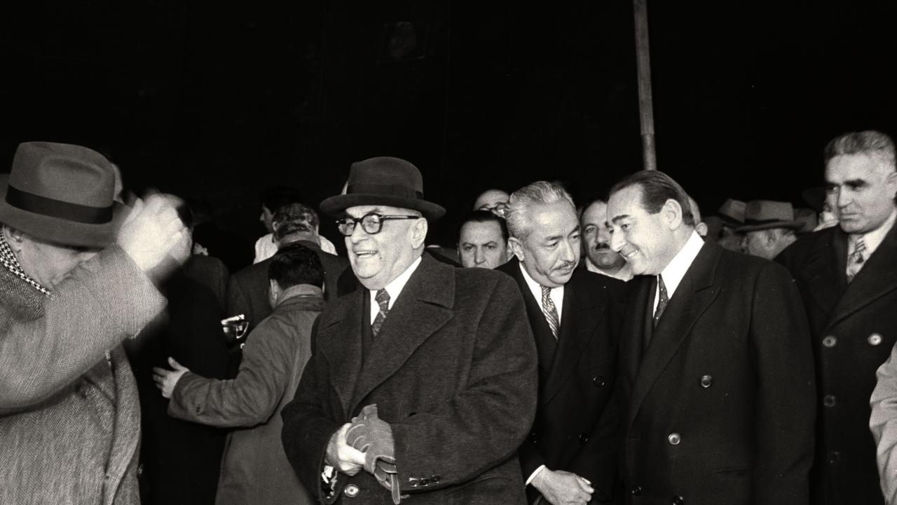 Heyet burada "hükümet tarafından organize edildiği" öne sürülen bir grup gösterici tarafından protesto edildi ve İnönü bir göstericinin attığı taşla yaralandı.