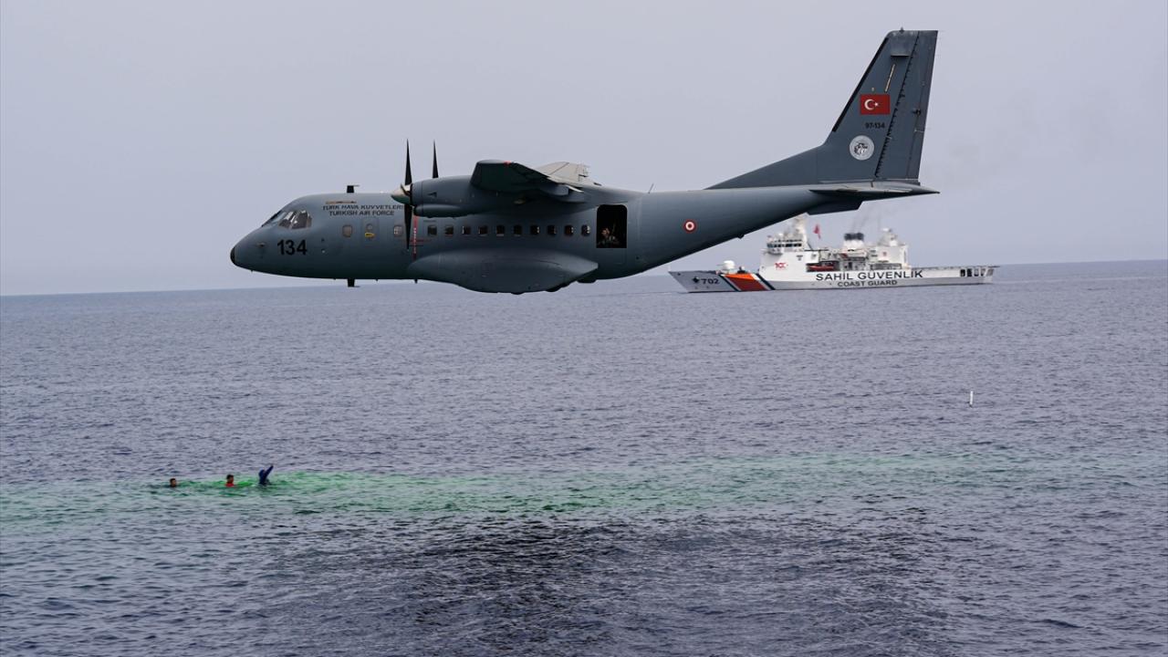 Arama kurtarma operasyonları ve geniş sorumluluk sahasının kontrolü ve gözetimi için görev yapan, havada 8 saat kalabilen Hava Kuvvetlerine ait CN-235 CASA arama kurtarma uçağı, kazazedelerinin yerini tespit ve işaretleme görevini yerine getirdi.