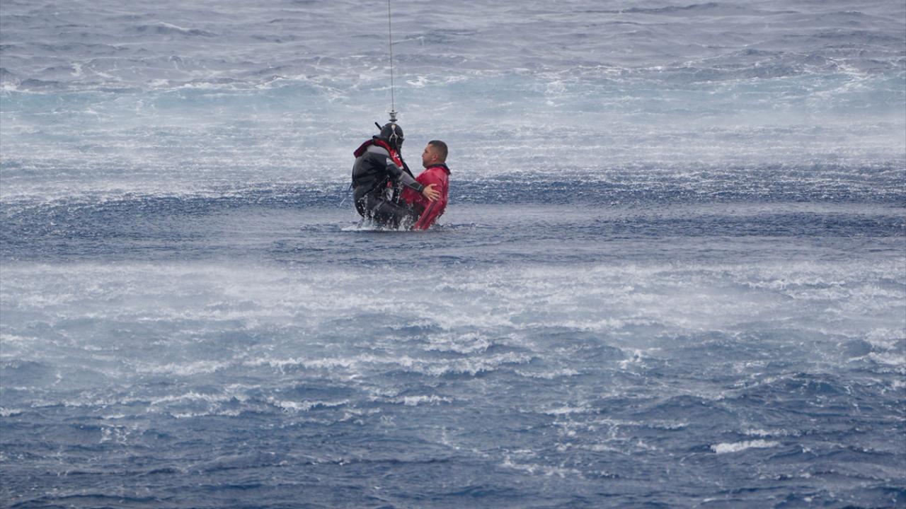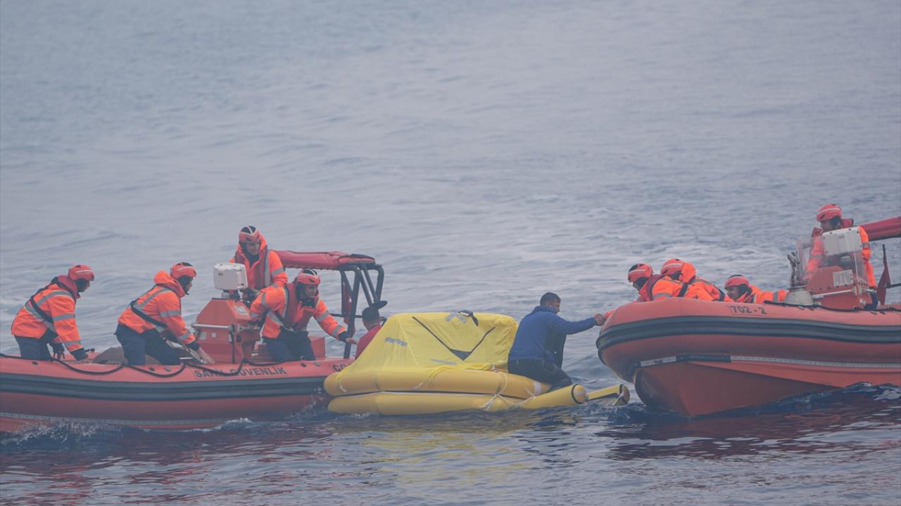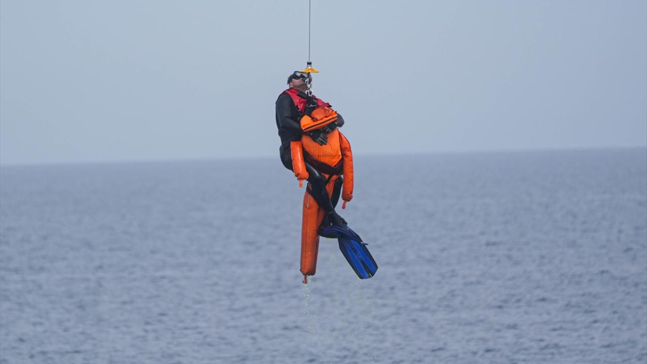Sahil Güvenlik`in arama kurtarma uçağı da kazazedelerin bulunduğu bölgeye arama kurtarma kiti (SAR) atarak kazazedelerin şişme platforma tutunması ve su yüzeyinde kalmasını sağladı.