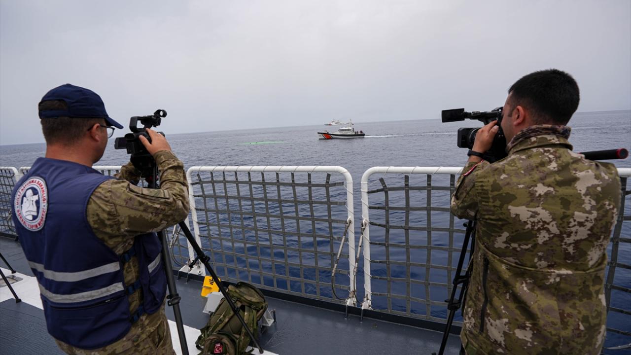 Tatbikatı, Sahil Güvenlik Komutanı Tümamiral Ahmet Kendir ile 15 ülkeden 28`i yabancı toplam 39 gözlemci ile basın mensupları, TCSG Umut gemisinden takip ediyor.