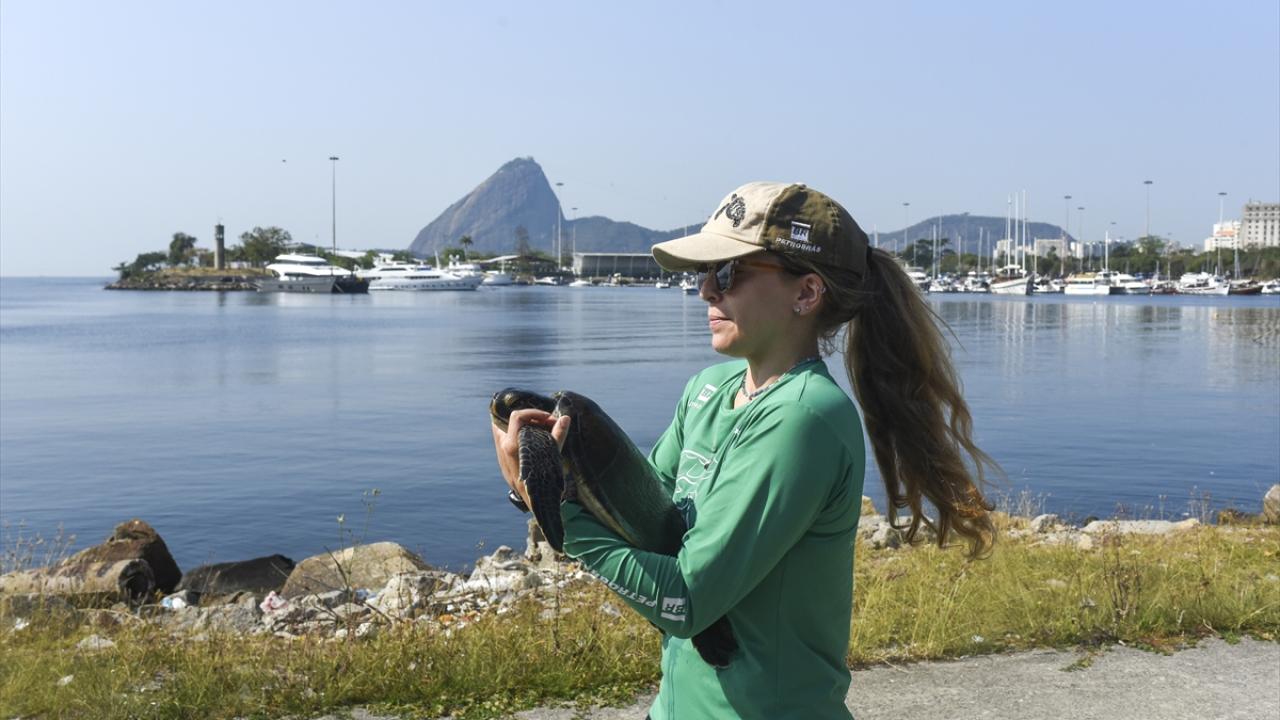 Deniz biyologları Brezilya'nın Guanabara Körfezi'ndeki kirlilikten etkilenen kaplumbağaları kurtarmaya çalışıyor
