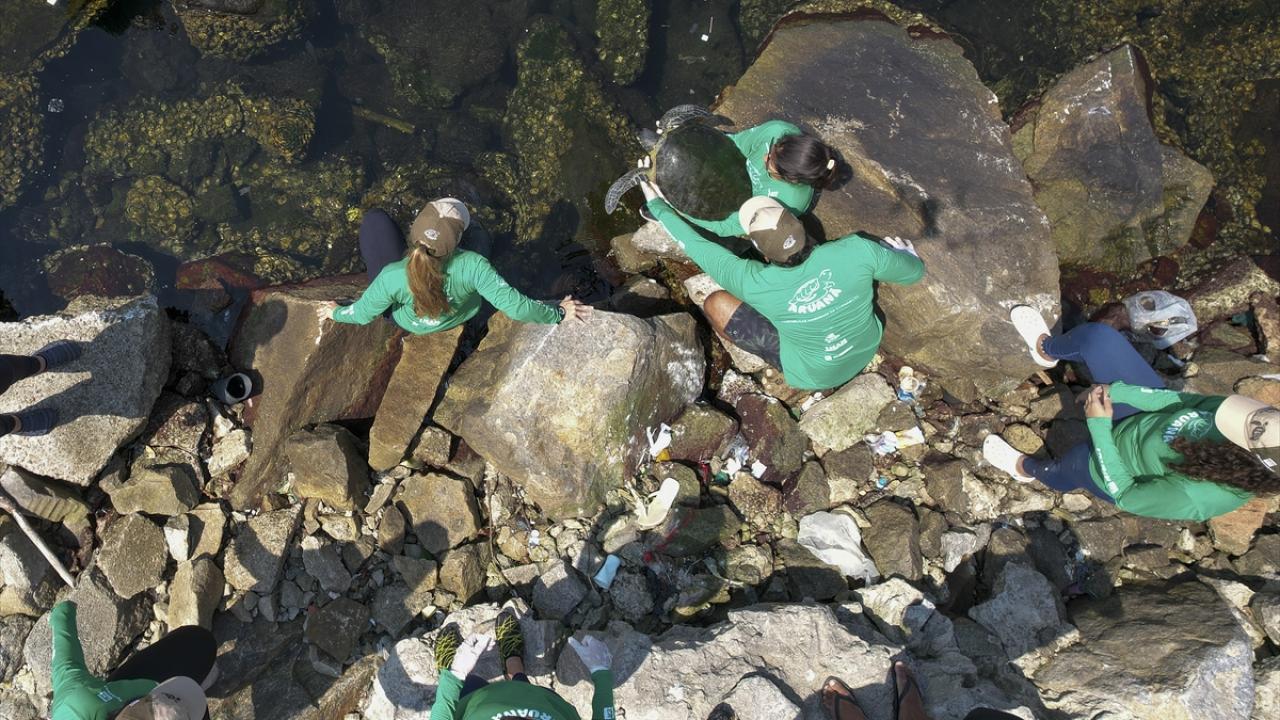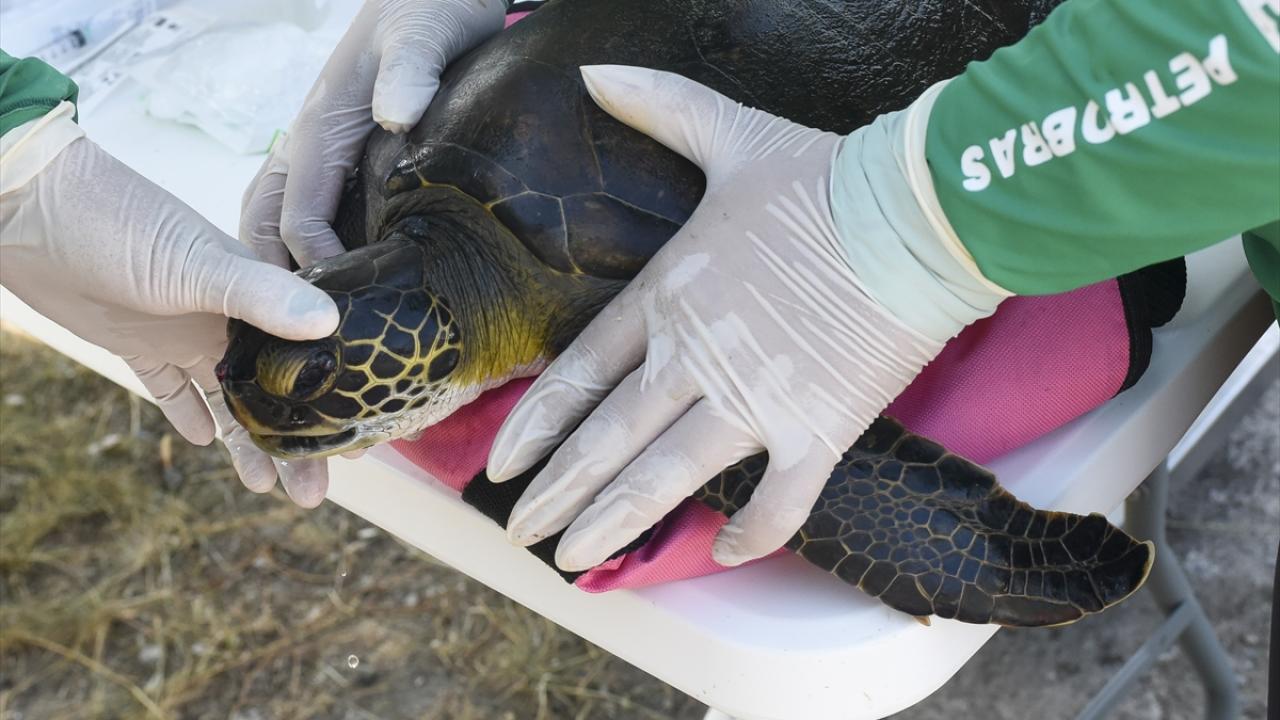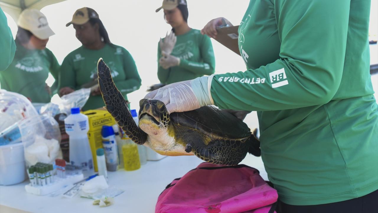 Fluminense Federal Üniversitesi öğretim görevlileri ve araştırmacıları, kirlilikten zarar gören deniz kaplumbağaları için çalışma yürütüyor.