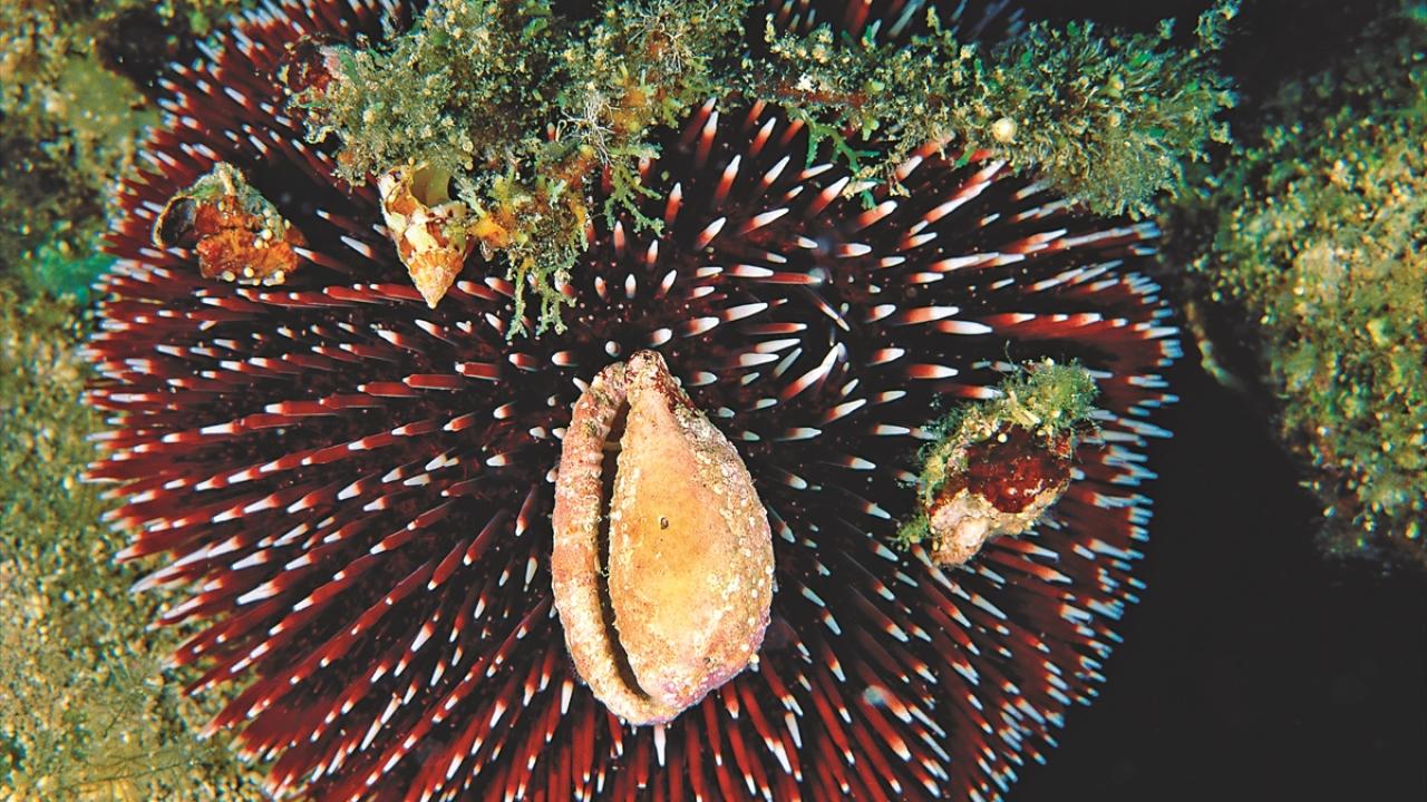 Sualtı Belgesel Yapımcısı Tahsin Ceylan, Deniz ekosisteminin belirleyici bir türü olan ve bine yakın türü bulunan deniz kestanelerini su altında görüntüledi.