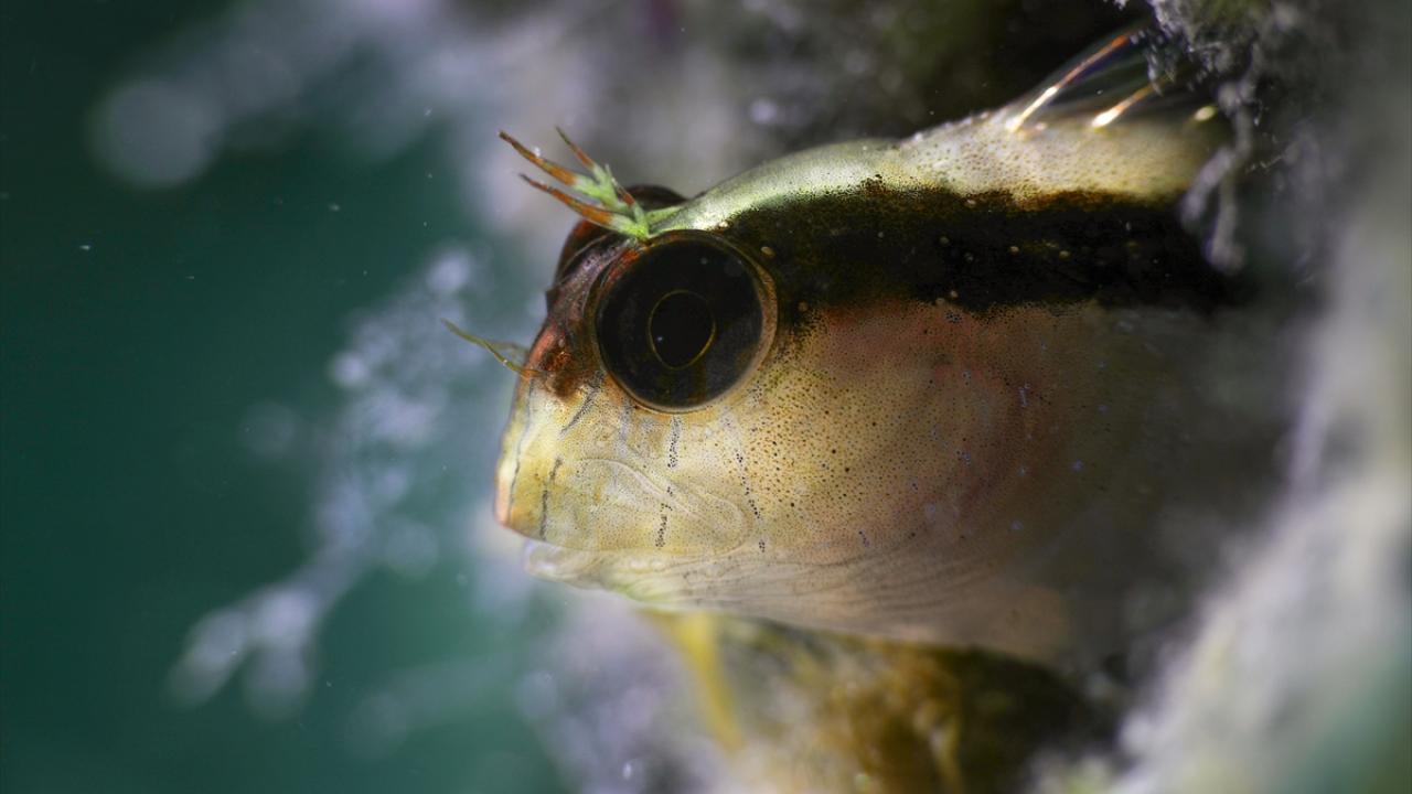 Kayalık alanlar ve su yüzeyine yakın bölgelerde yaşam süren şeritli horozbina balığı (Parablennius rouxi), Akdeniz ve Ege Denizi’nde yaygın olarak görülüyor.