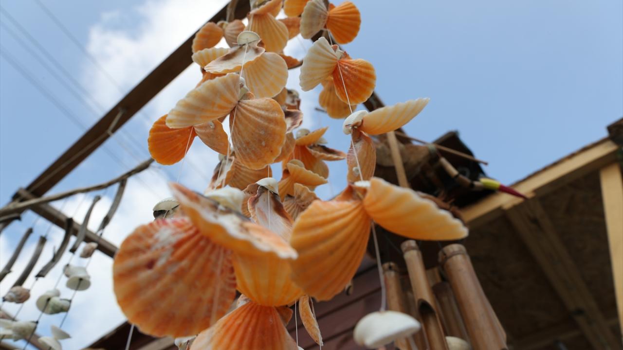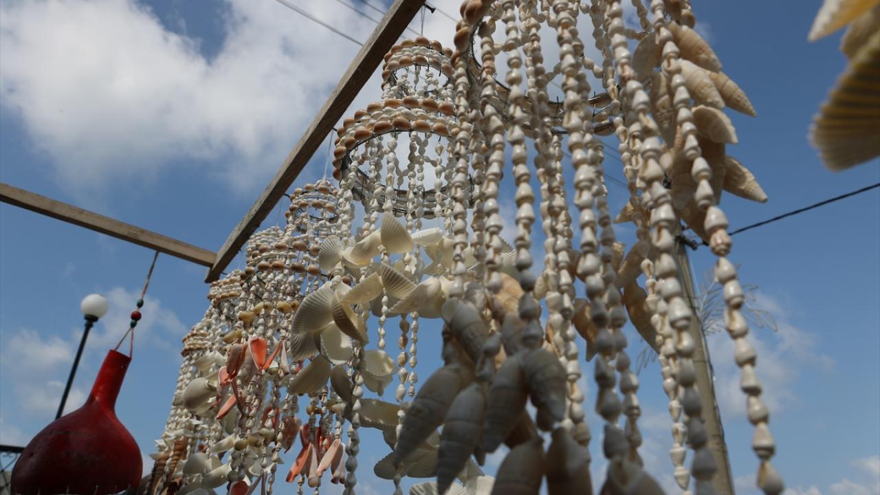 Sakarya'nın Kocaali ilçesinde yaşayan 53 yaşındaki Kamil Deniz, deniz kabuklarından yaptığı süs eşyalarını seyyar tezgahında satarak ailesinin geçimini sağlıyor.