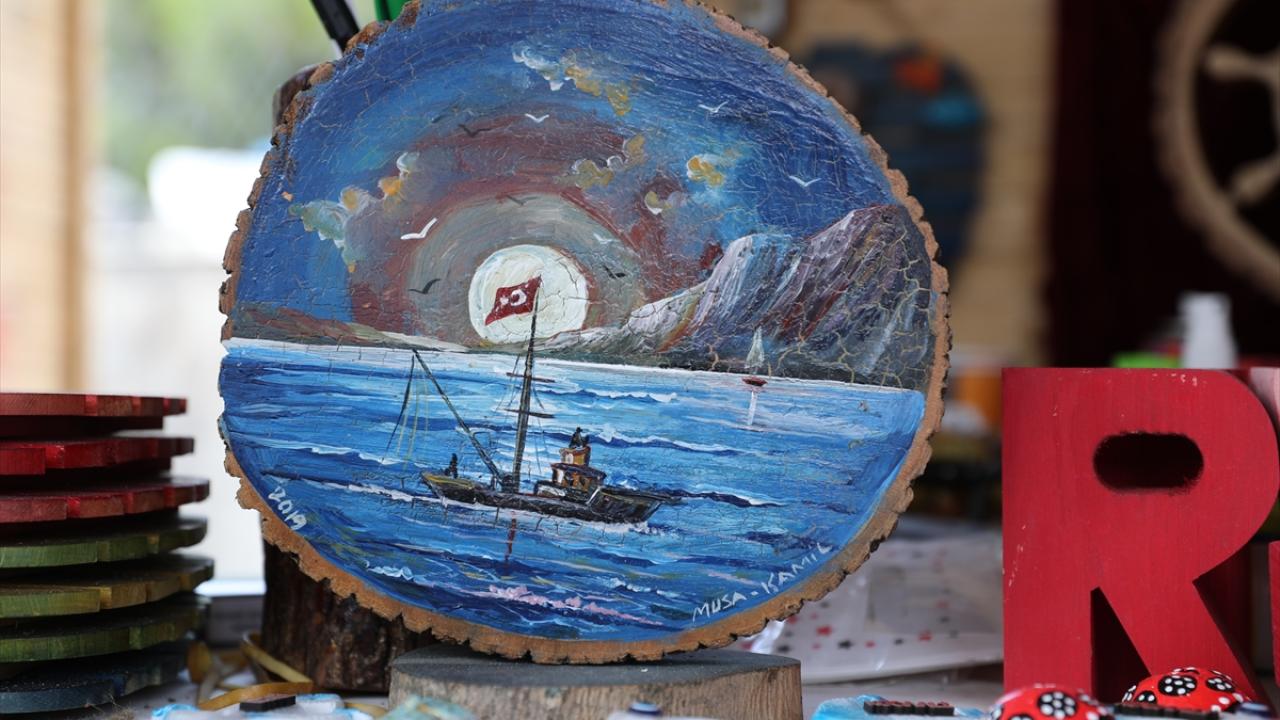 İlkokul yıllarında merakla başladığı hediyelik eşya yapma işinin zamanla evinin geçim kapısı olduğunu anlatan Kamil Deniz, ahşap yakma ve hat sanatı gibi alanlarda da kendisini ilerlettiğini söyledi.