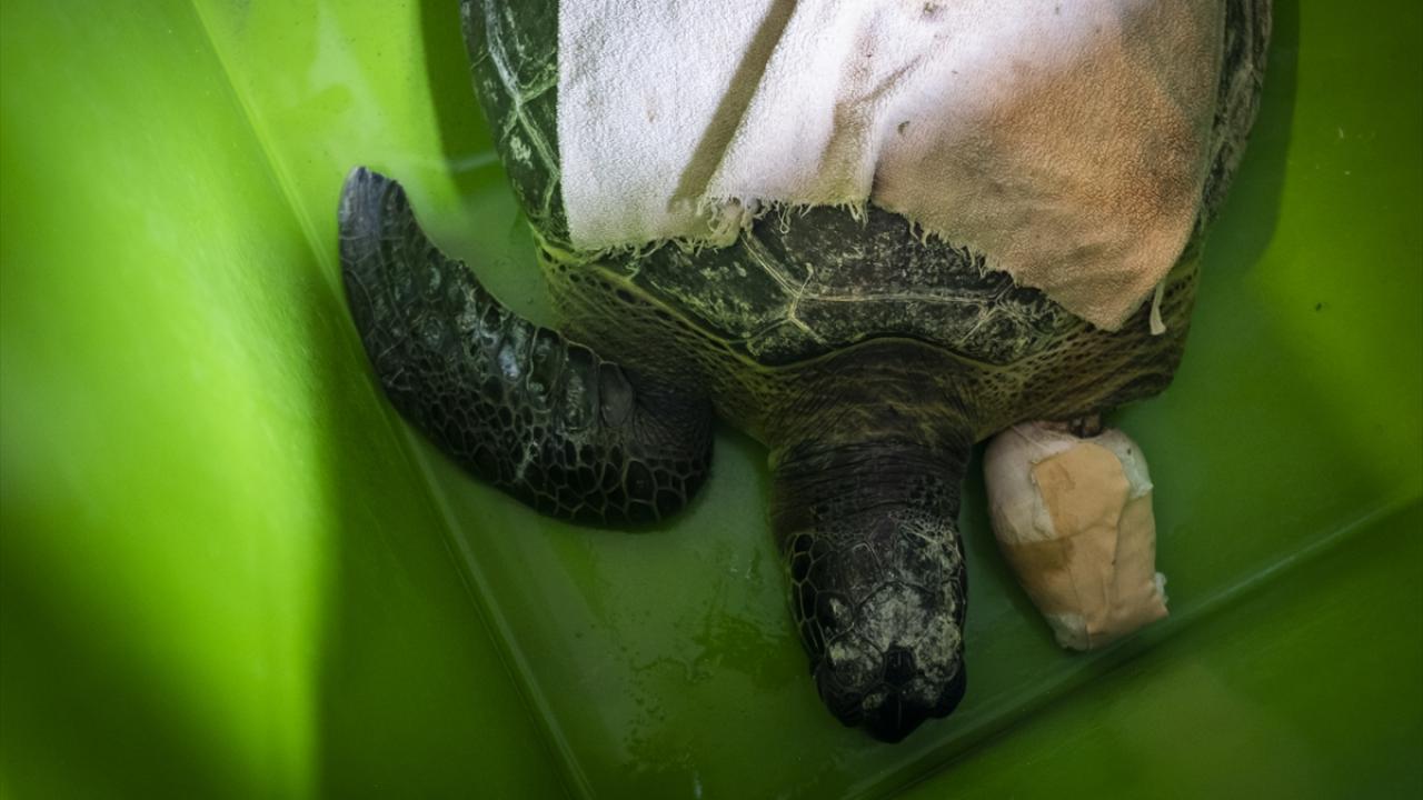 Yakup Kaska, Eylül 2021`de Fethiye`de vatandaşlar tarafından bulunan ve tekne yaralanması ve misina yutması sebebiyle tedavi altına alınan, "Ufuk Duru" ismi verilen yeşil deniz kaplumbağasının DEKAMER ekiplerince tedavi altına alındığını anlattı.