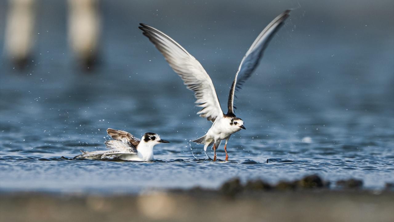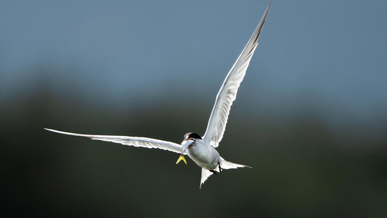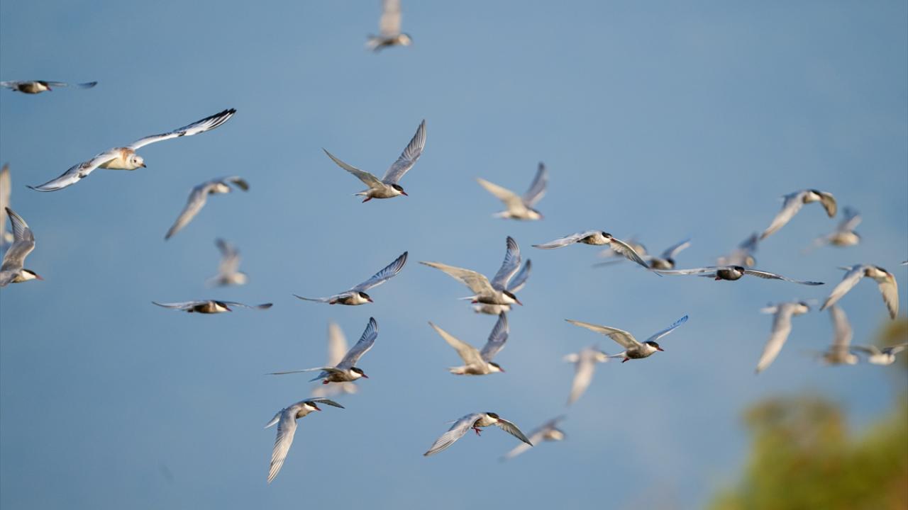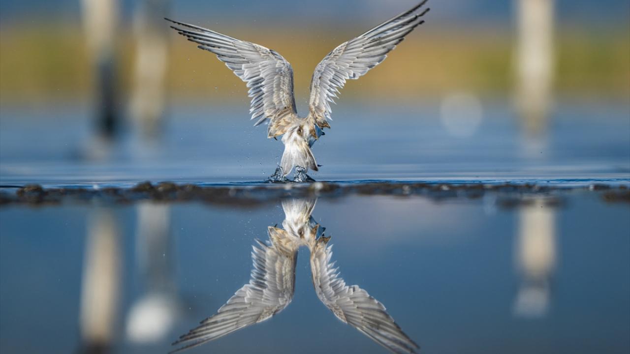 Göç dönemlerinde Bursa’nın Karacabey ilçesindeki kıyılarda görüntülenen sumru kuşları, uçuş sırasında keskin manevralarla suya dalarak avlarını hızlı reflekslerle yakalıyor.