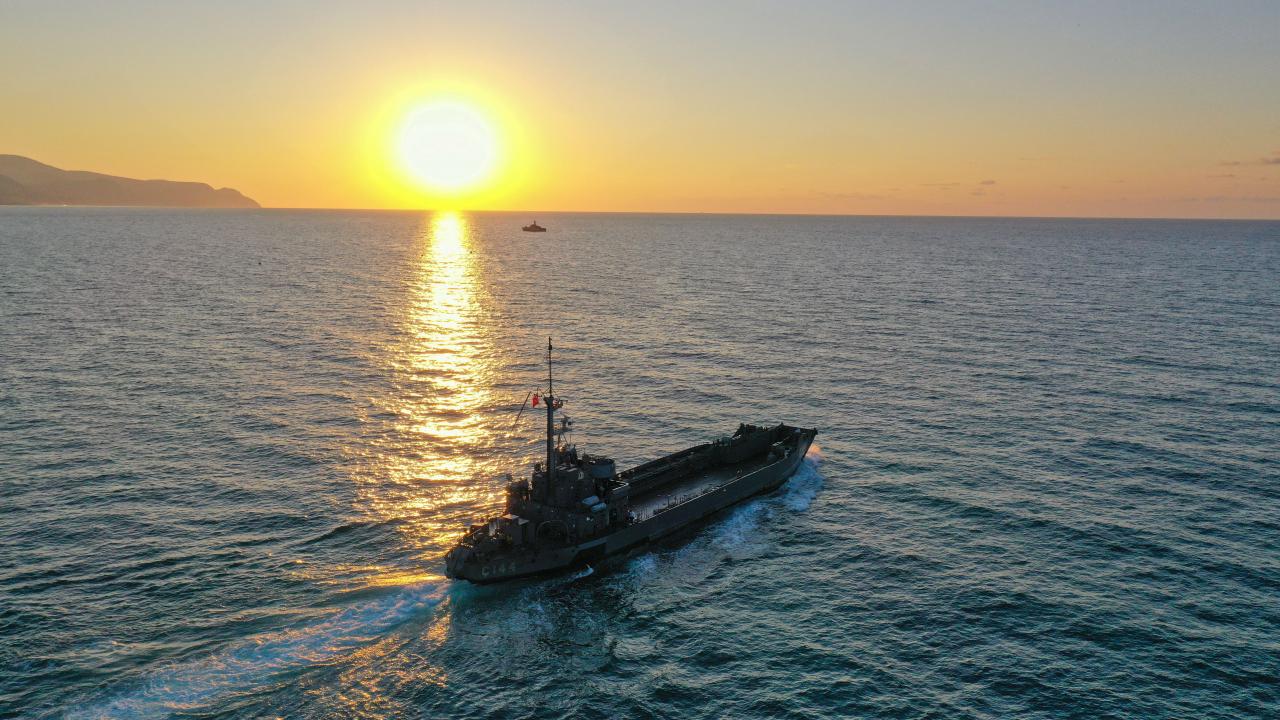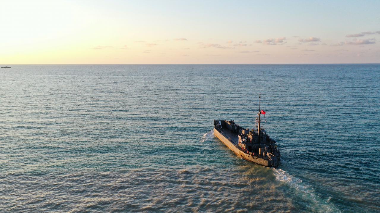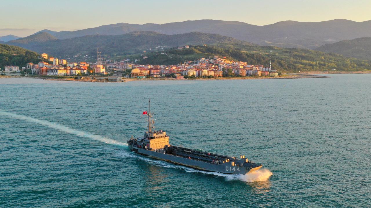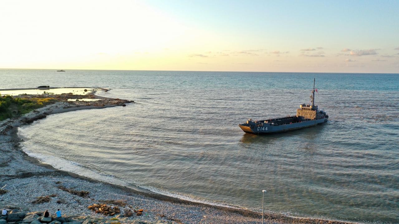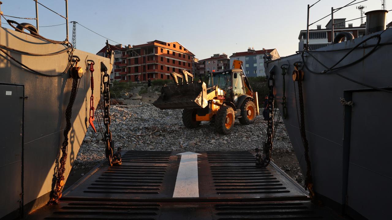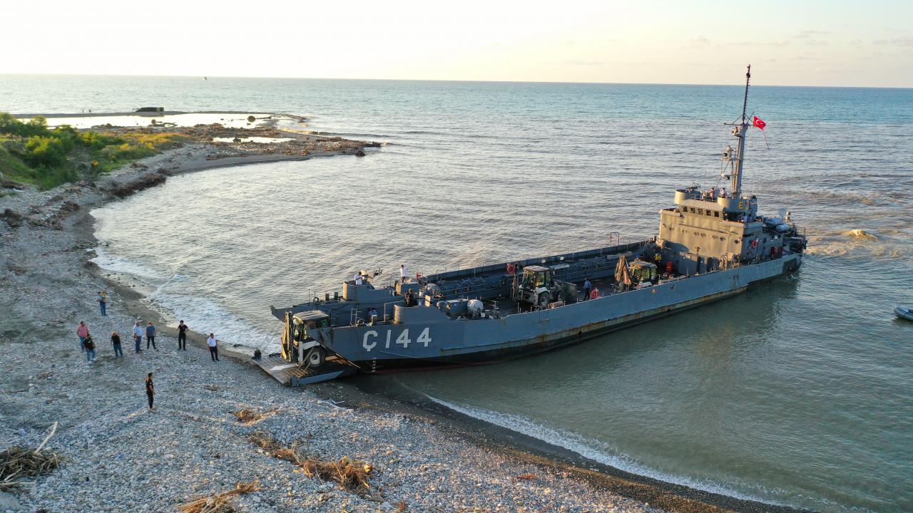 Deniz Kuvvetleri Komutanlığı'nın çıkarma gemisi iş makineleriyle Sinop'ta